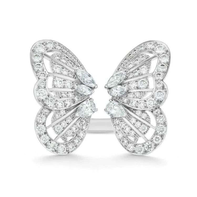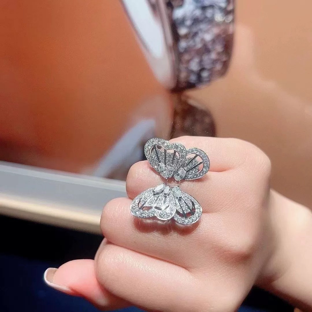 格家小香风蝴蝶戒指通体925纯银开口女戒满钻优雅名媛配饰不掉色