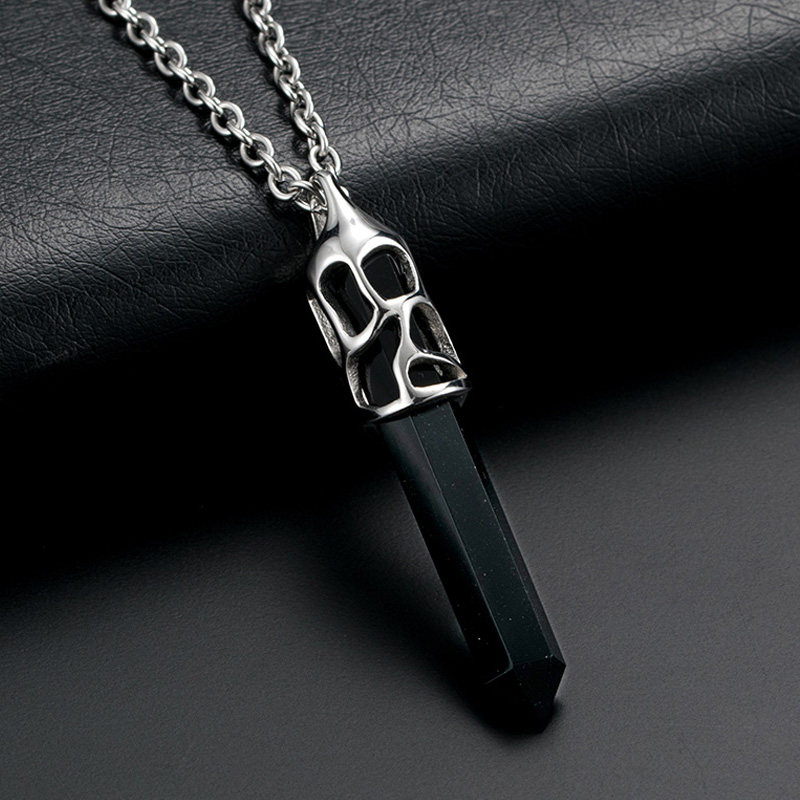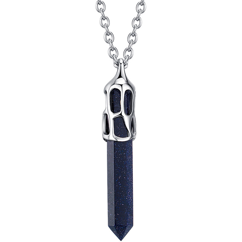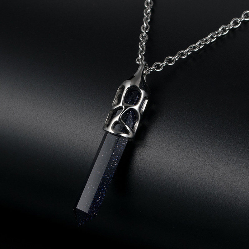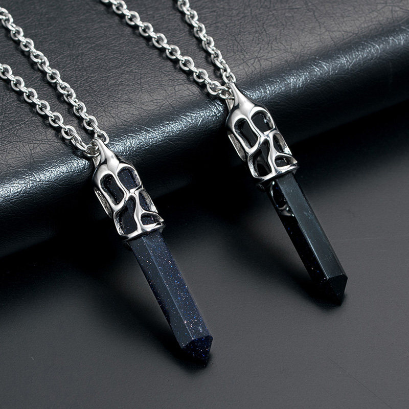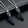 黑曜石项链男潮个性蓝砂石吊坠女日韩复古潮男 钛钢锁骨链ins简约