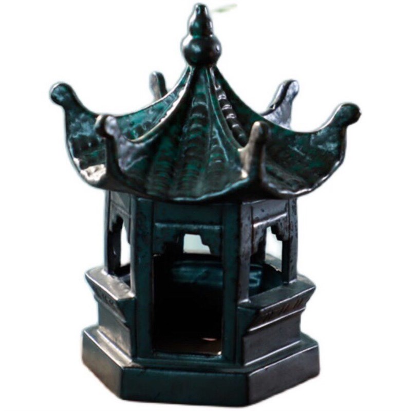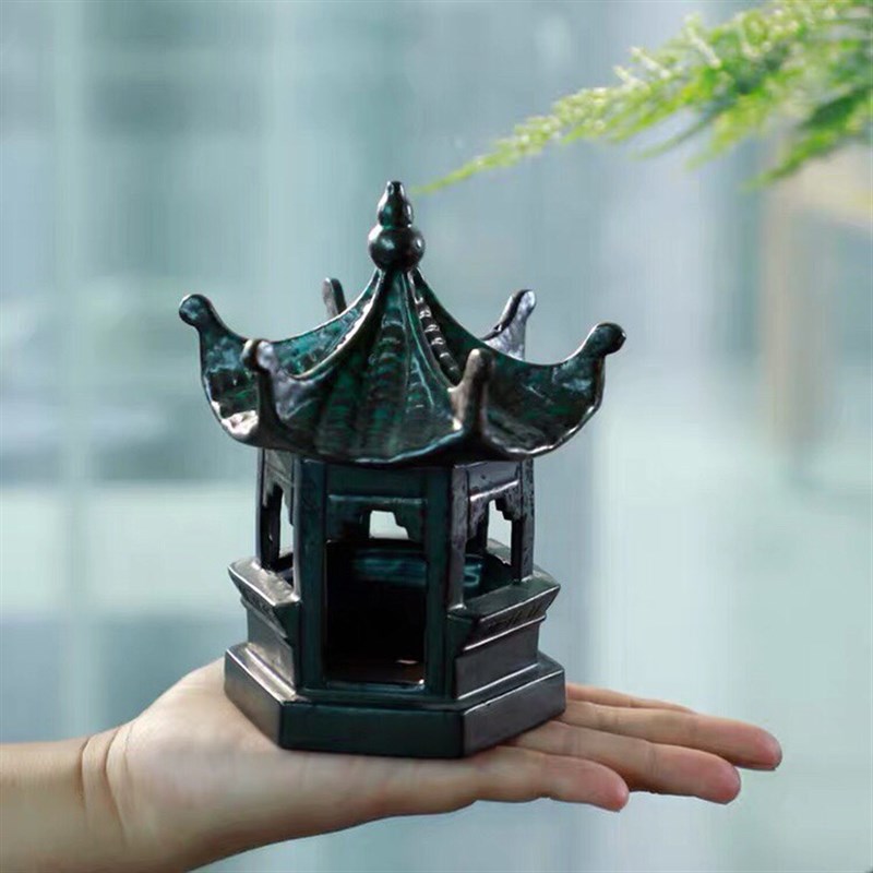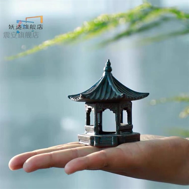 新品复古镂空陶瓷六角亭宝塔摆件盘景微景观假山鱼缸造景茶宠装饰