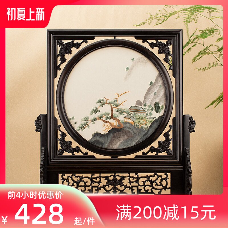 新中式茶几摆件手工双面绣摆台古典酒柜装饰品台屏中国风苏绣送礼