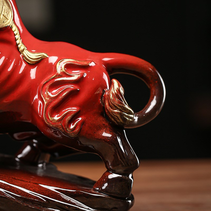 牛摆件招财办公室老板桌商务高档倒流香灯圈装饰软装W乔迁开业礼
