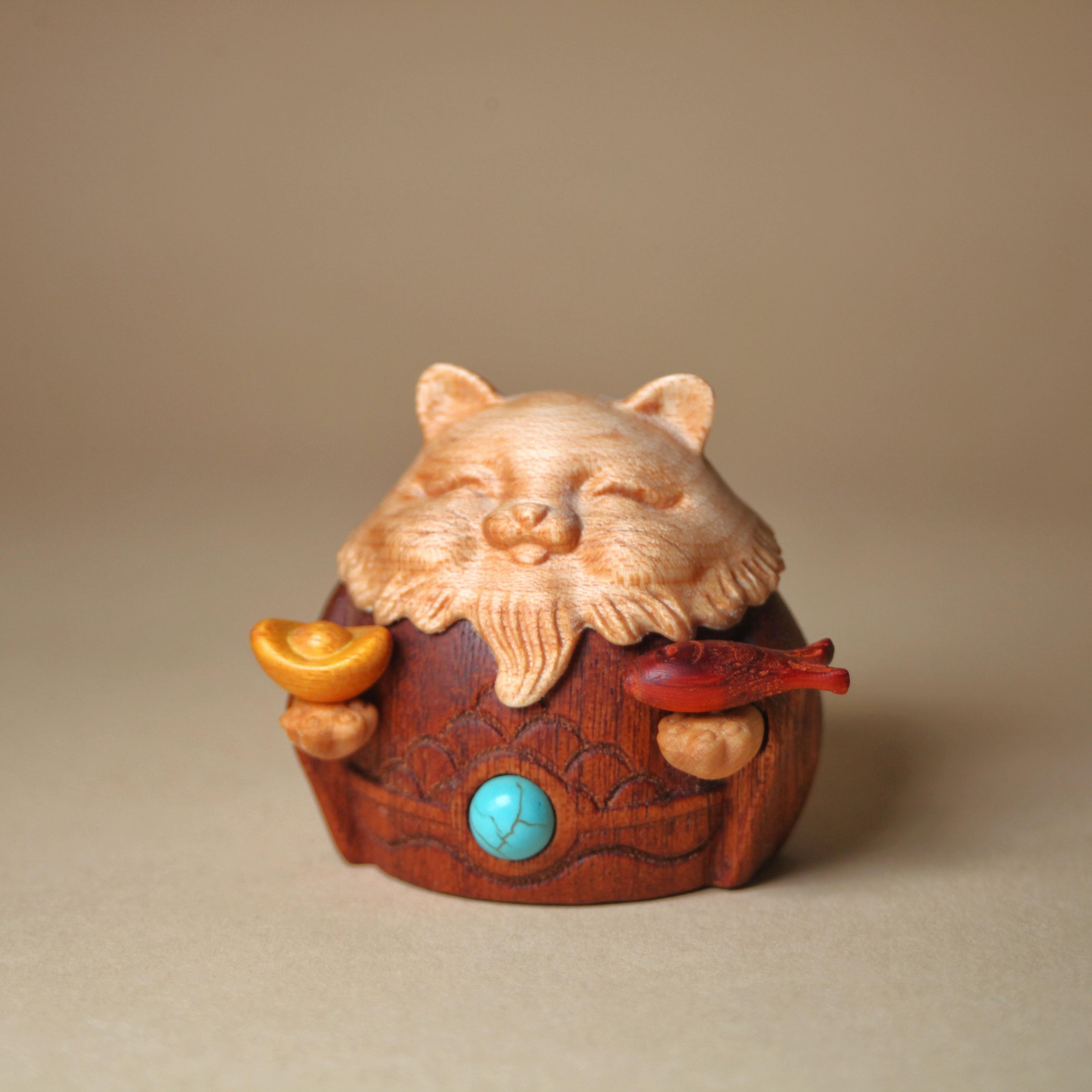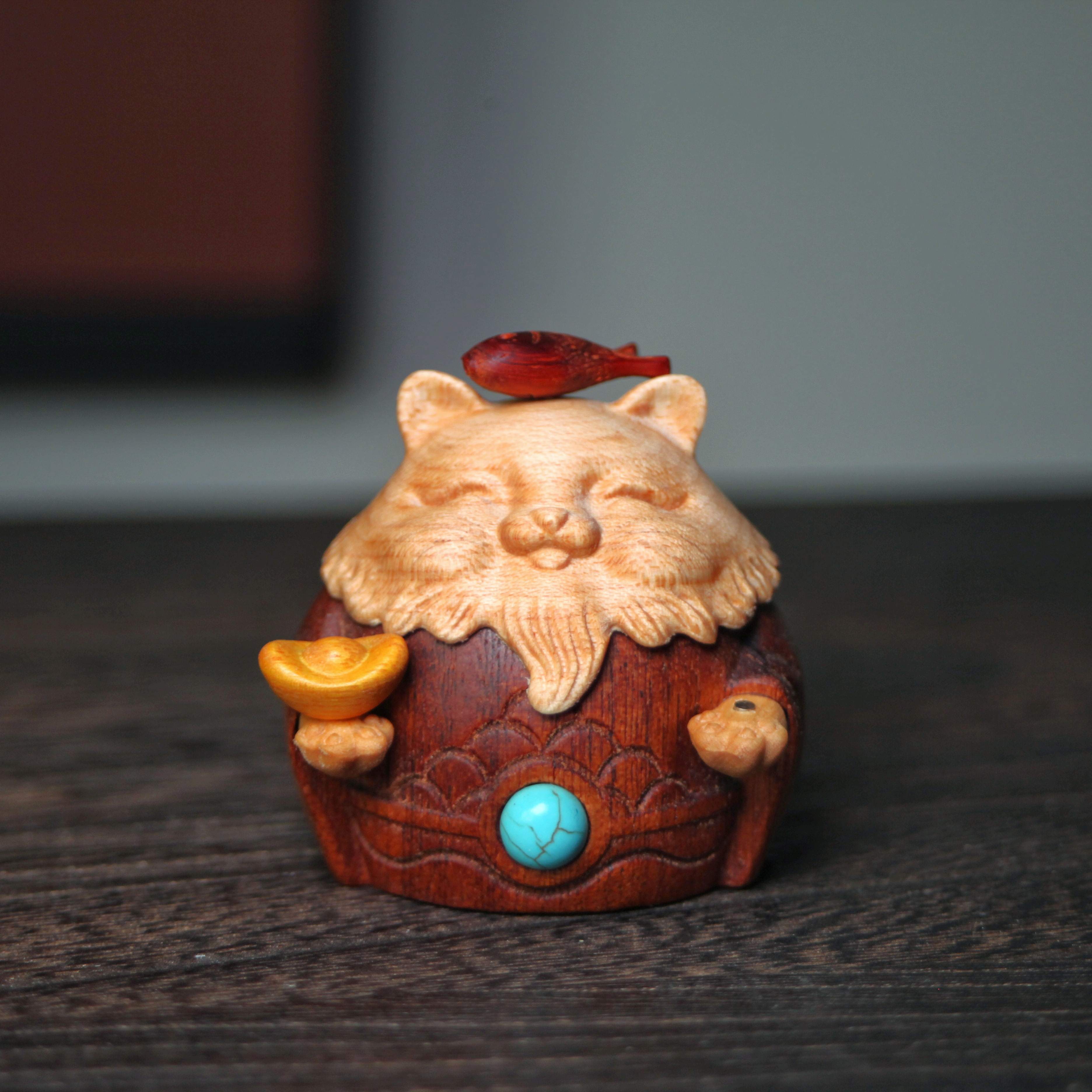 乌檀木雕刻小鱼摆件实木肥猫财鱼雕刻家用办公桌面新意文玩摆件