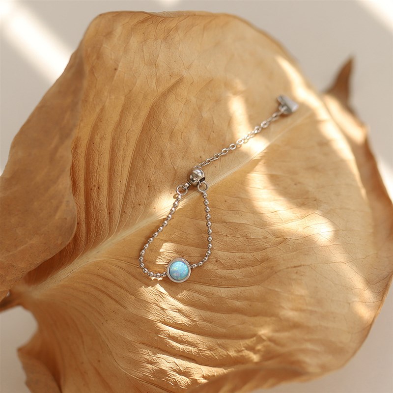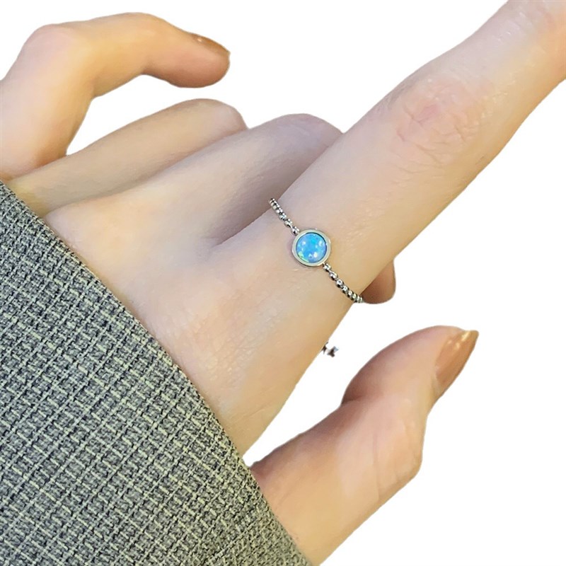 天然欧泊石显白蓝色金银双色抽拉链条戒指可调节轻奢气质大方链条