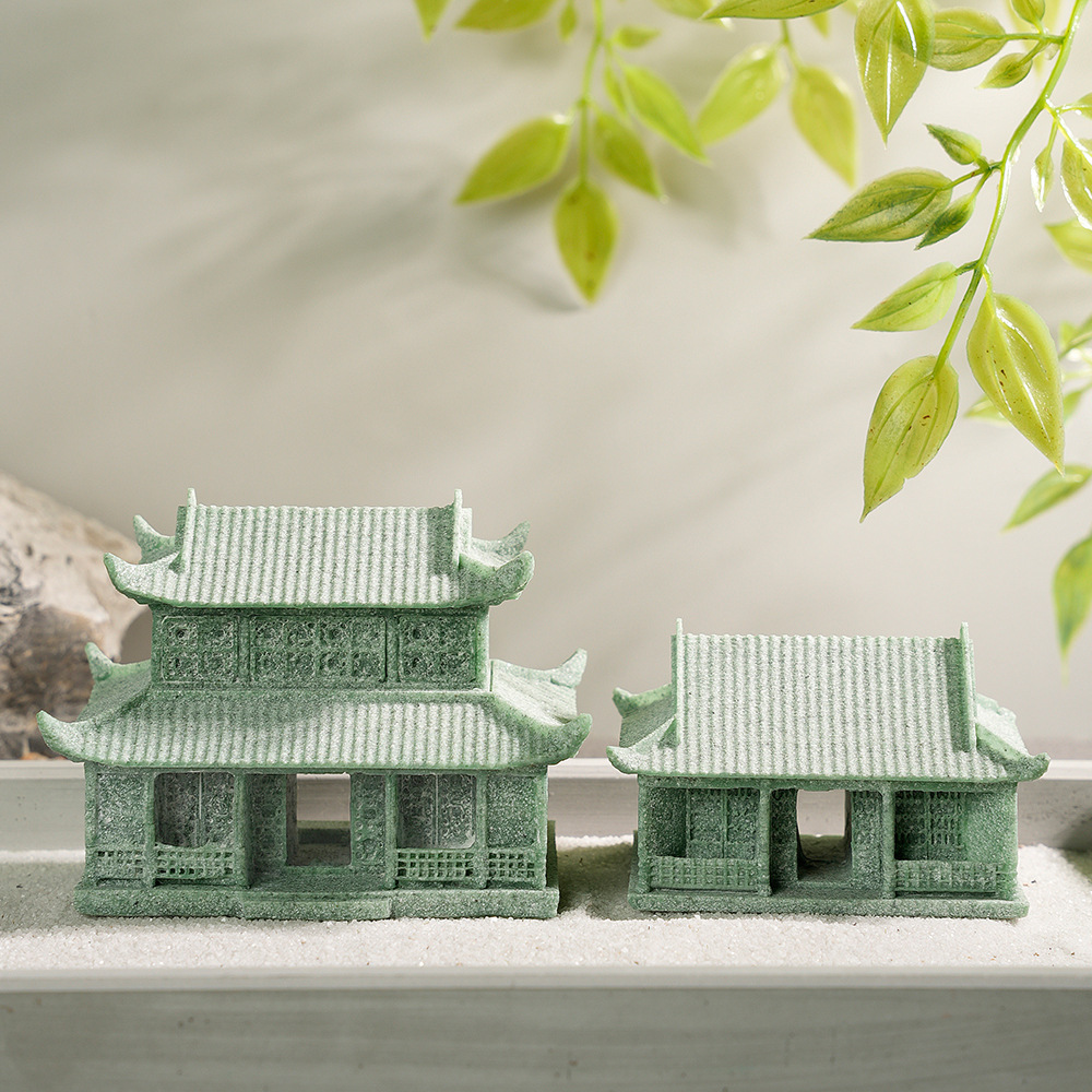 微景观塔阁桌面摆件工艺品鱼缸造景中式房屋沙盘假山流水摆件模型