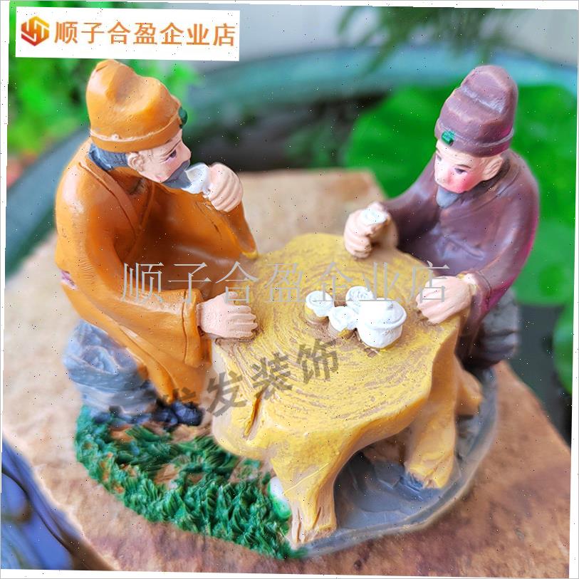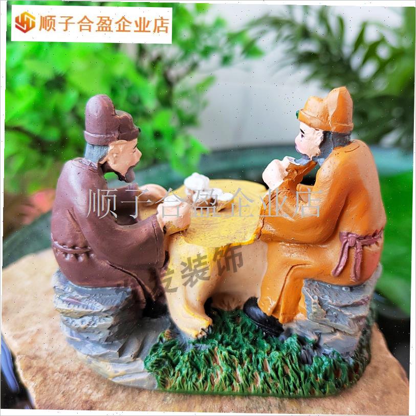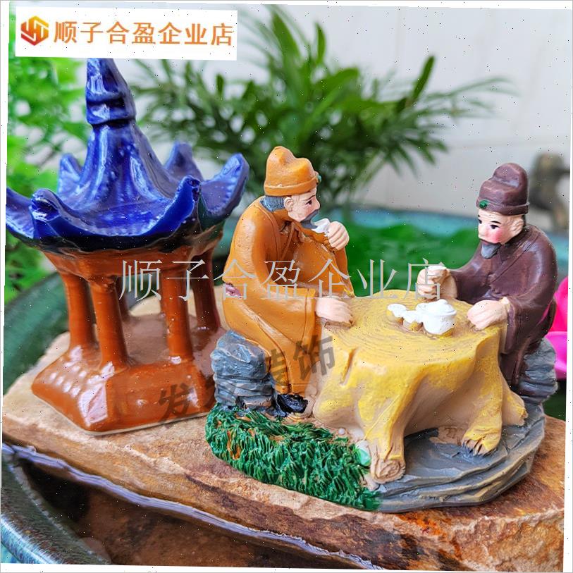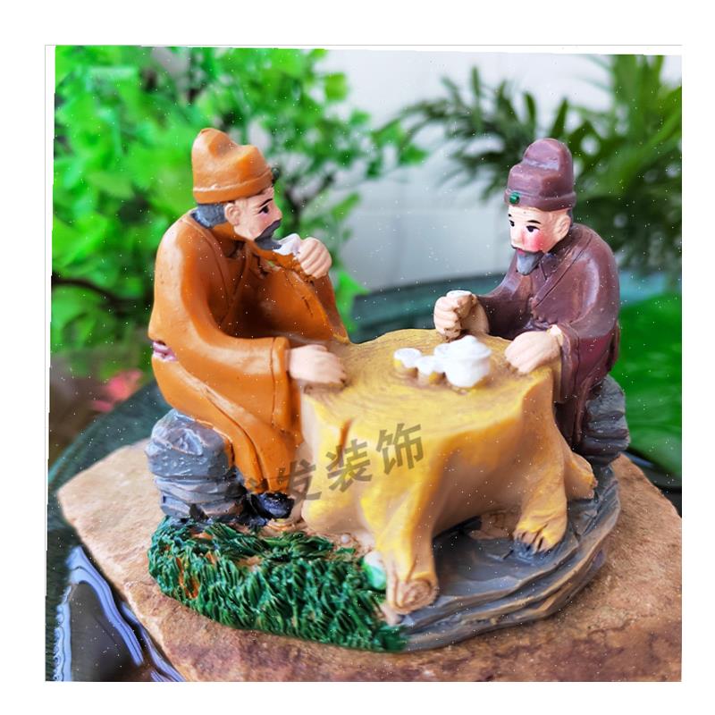 茶文化古风喝茶人物小摆件茶宠桌面微景观鱼缸假山W盆栽造景装饰.