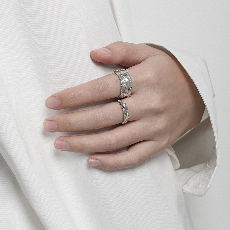 韩版ins小众设计感极简不规则宽面高级质感S925纯银开口戒指女生