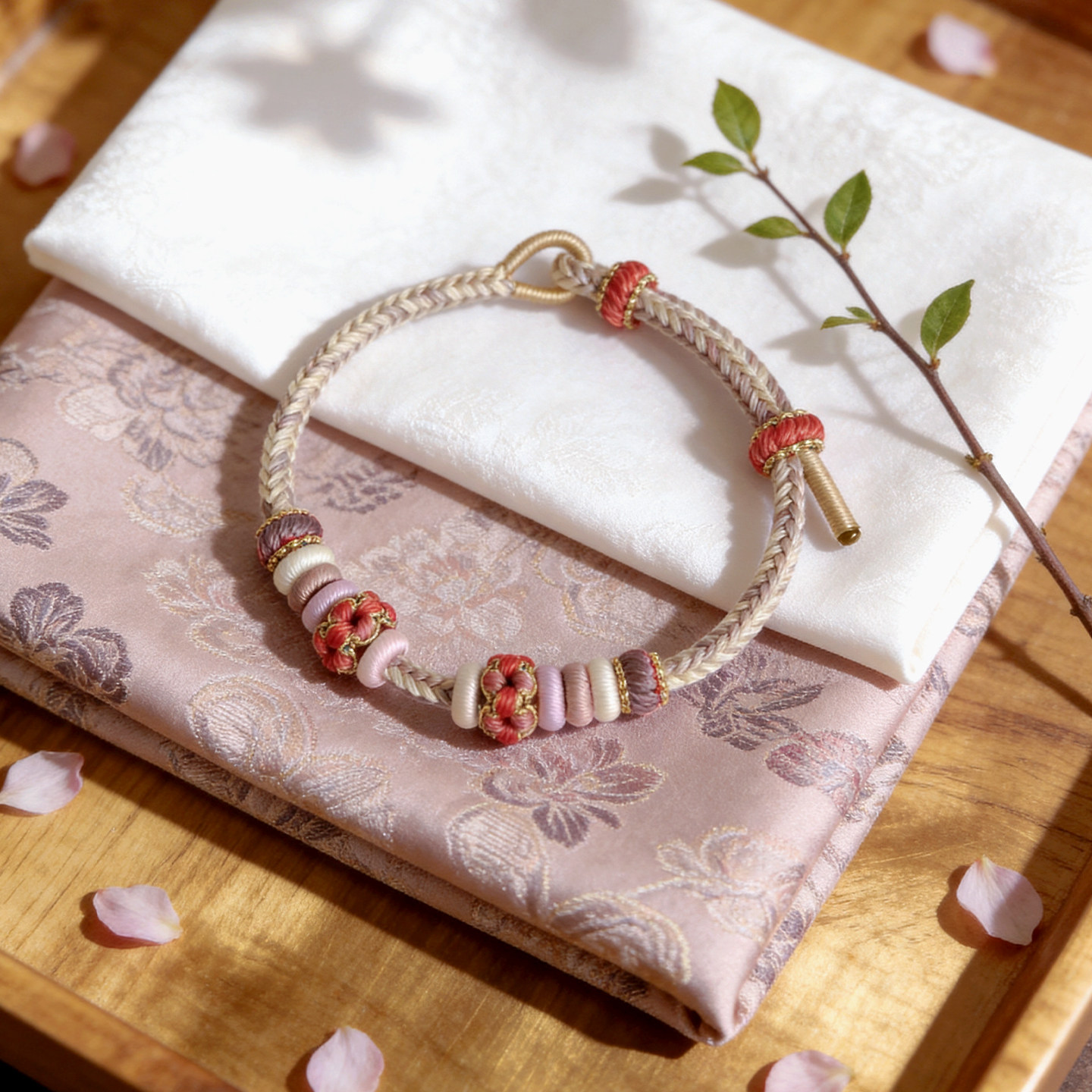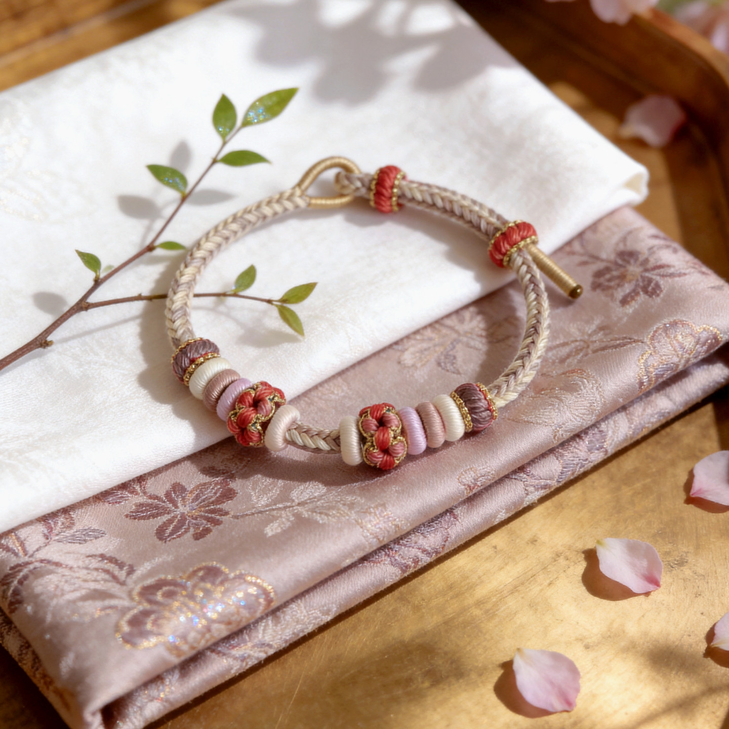 温柔风手工编织绳简约橙色手绳可穿珠串黄金转运珠可调节编绳手链