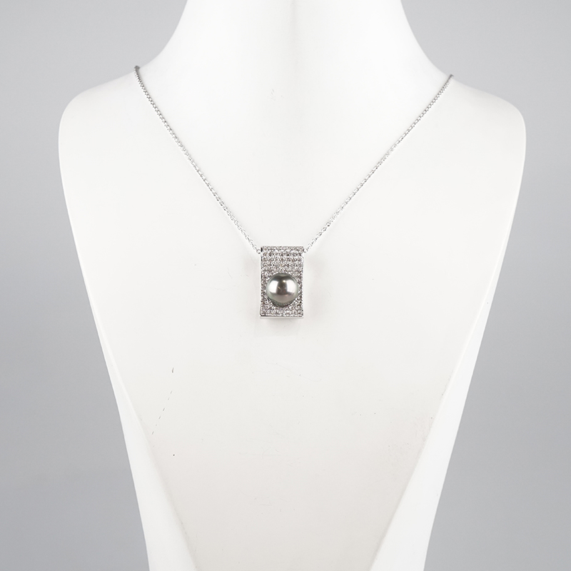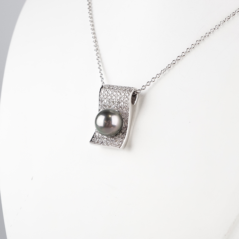 中古「95新」日本进口商品黑色南洋珍珠钻石750白金40 45cm项链