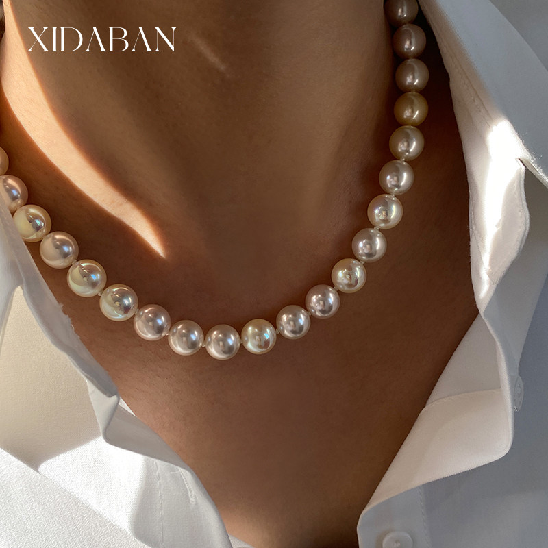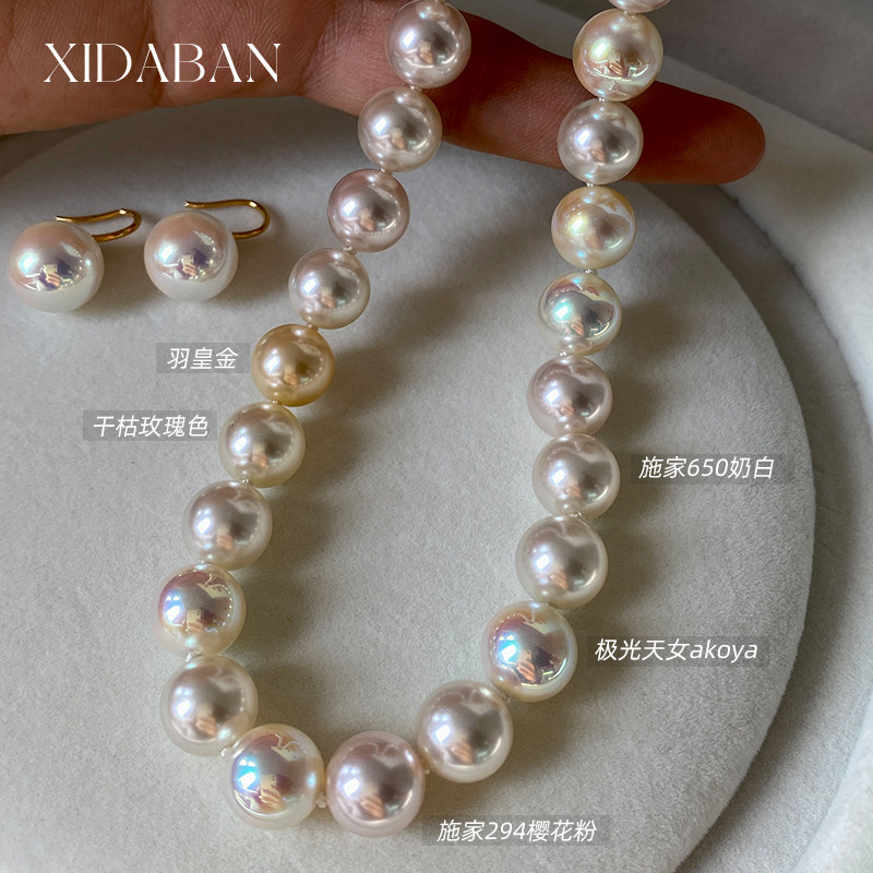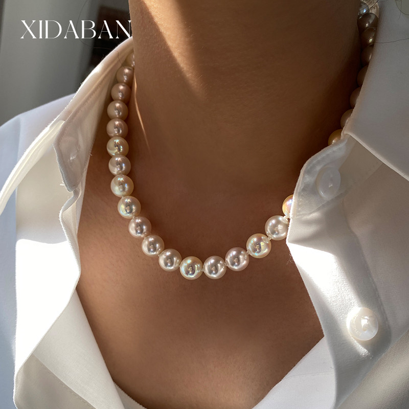 西大班 施家极光镜面akoya天女樱花粉混彩珍珠项链小众设计锁骨链