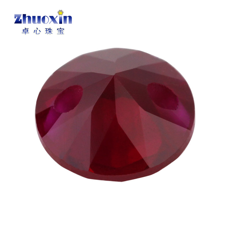 双孔圆形8#鸽血红红刚玉裸石 人造Ruby打孔合成红宝石耳环串珠DIY
