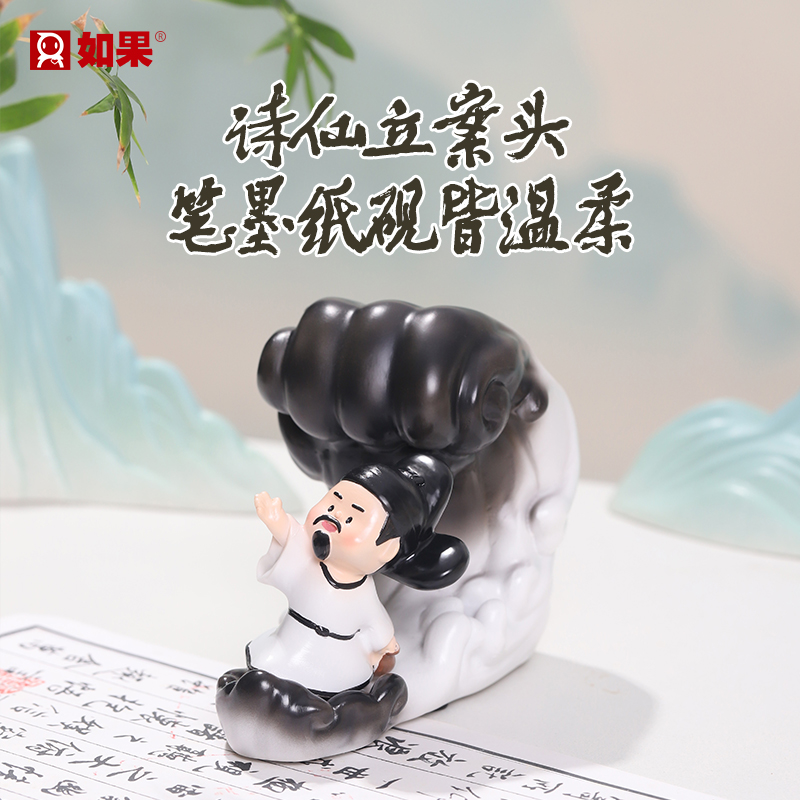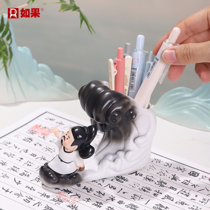 国潮李白破浪笔筒摆件办公室工位桌面装饰情绪稳定生日礼物实用