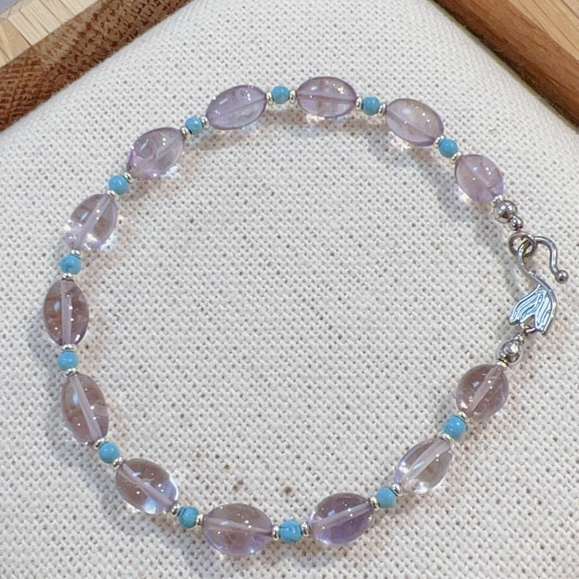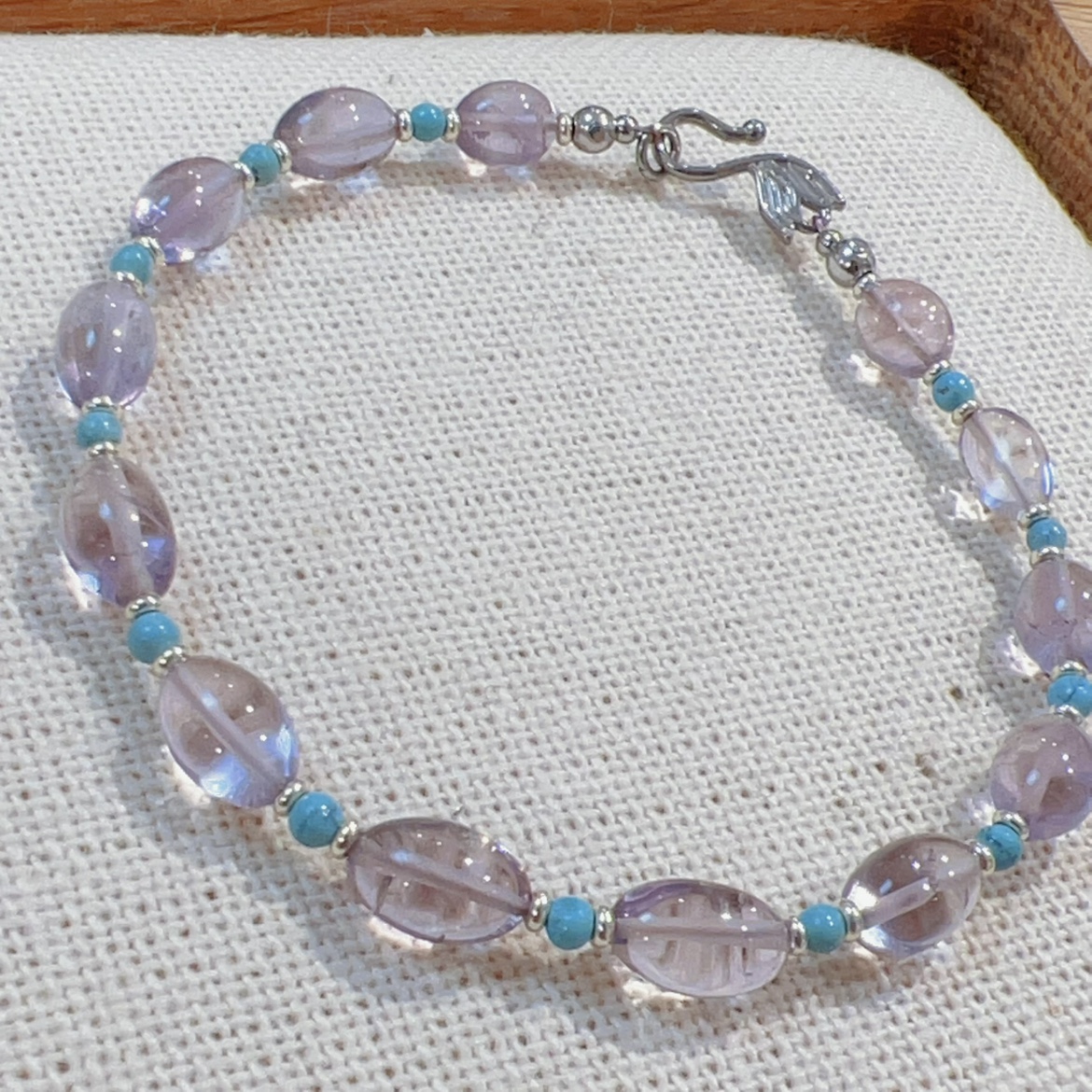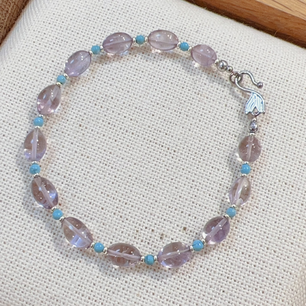 天然无优化薰衣草紫水晶枣珠手链女款小众设计百搭绿松石手串桶珠