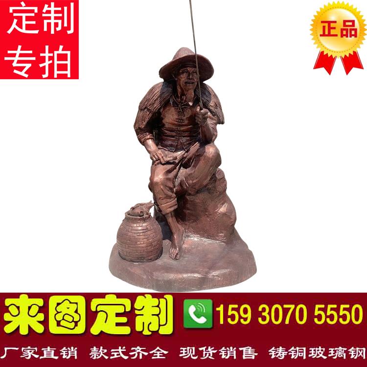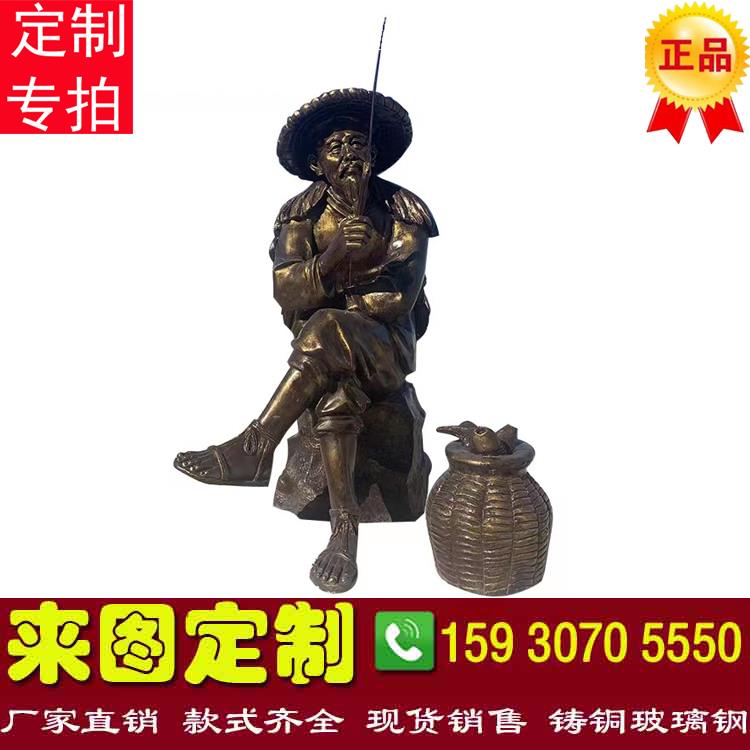 玻璃钢仿铜渔民人物姜子牙雕塑铸铜姜太公模型雕像民俗渔文化装饰