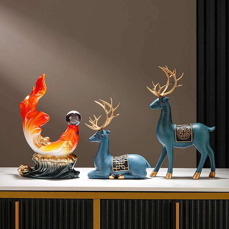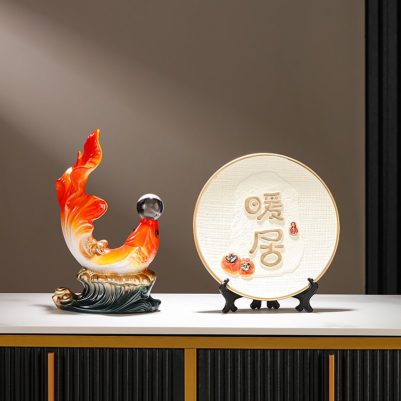 陶瓷年年有余鱼摆件客厅r招财装饰品酒柜电视柜玄关柜乔迁搬家礼