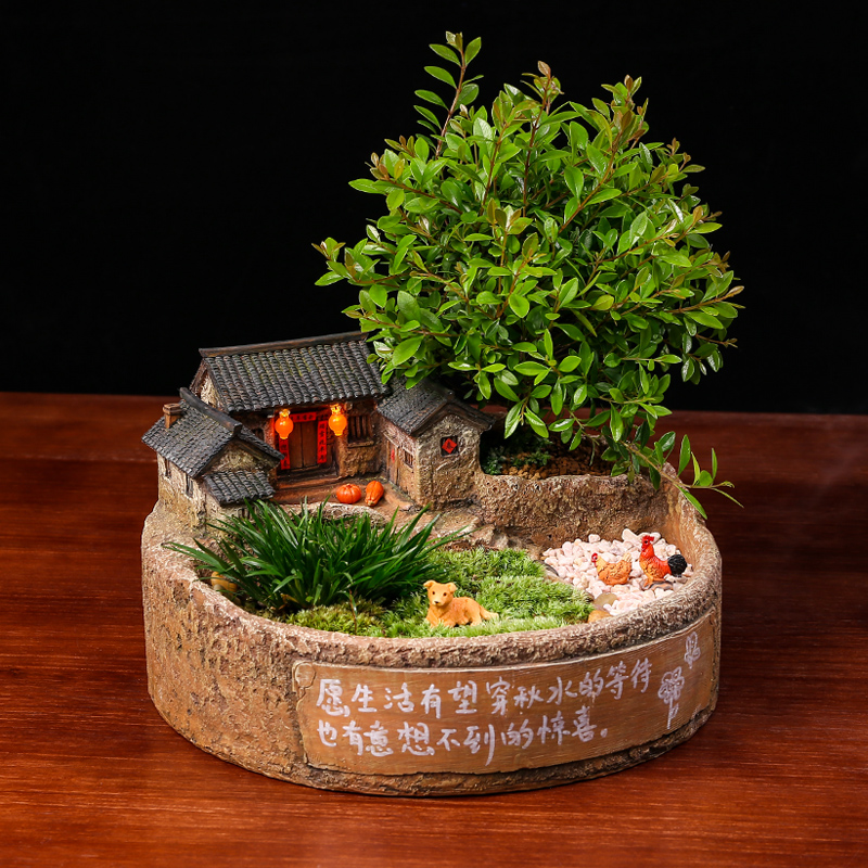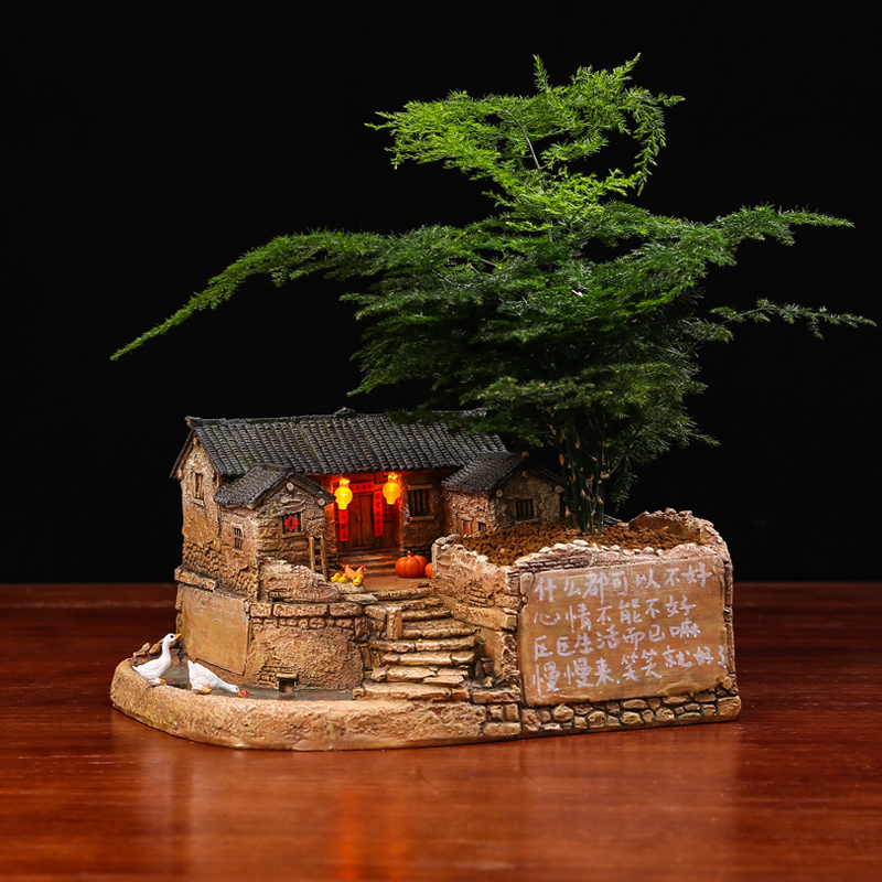 桌面微景观造景植物盆景办公室复古房子模型摆件怀旧装饰品老物件