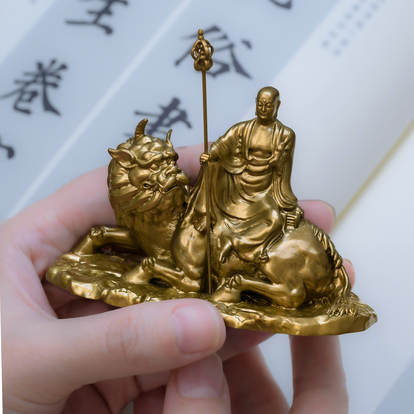 简修行黄铜地藏王菩萨佛像摆件坐骑谛听随身佛办公室书房家居装饰