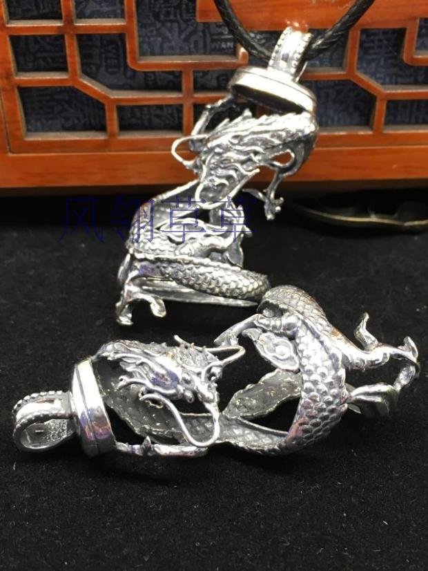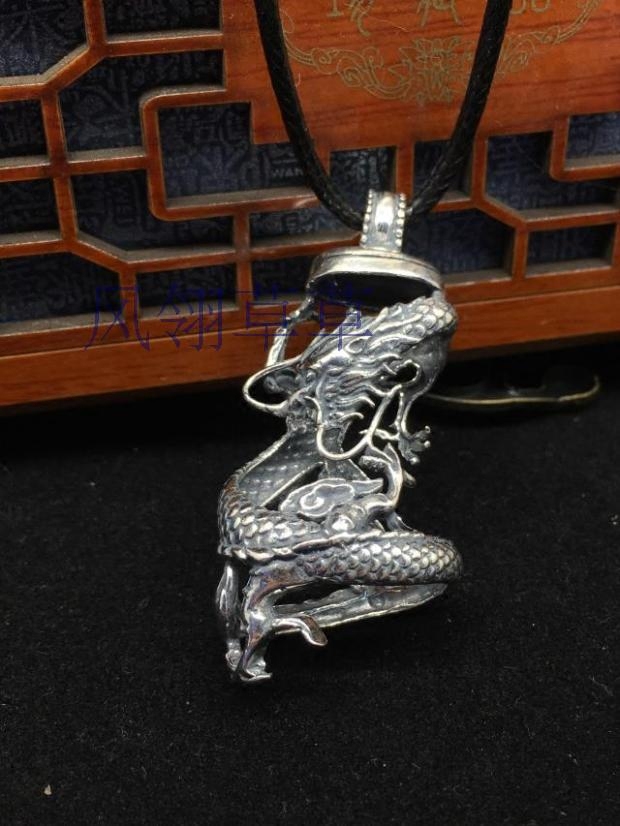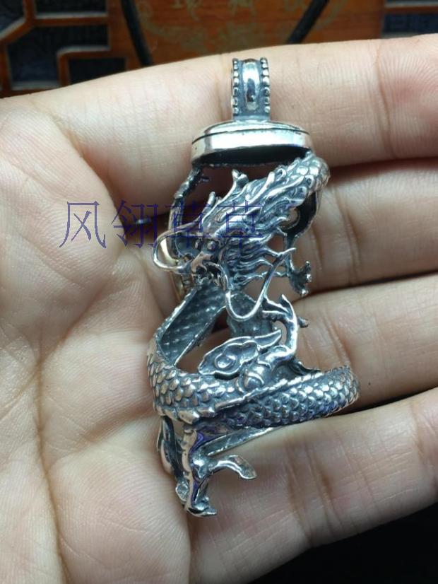 复古纯银动物大牙齿盘龙防裂银牙套加工包银套保护套项链吊坠男女
