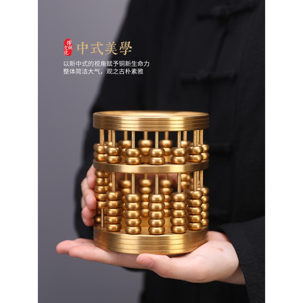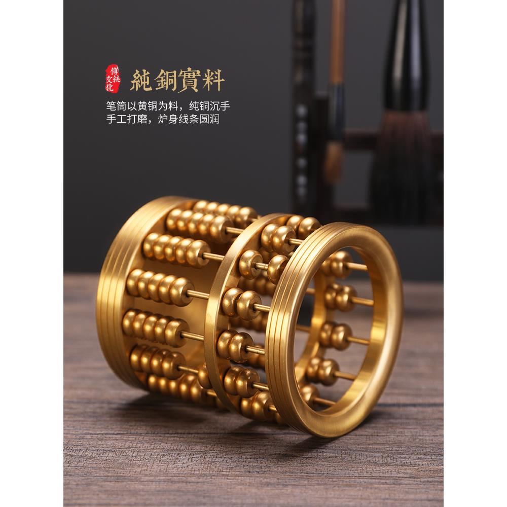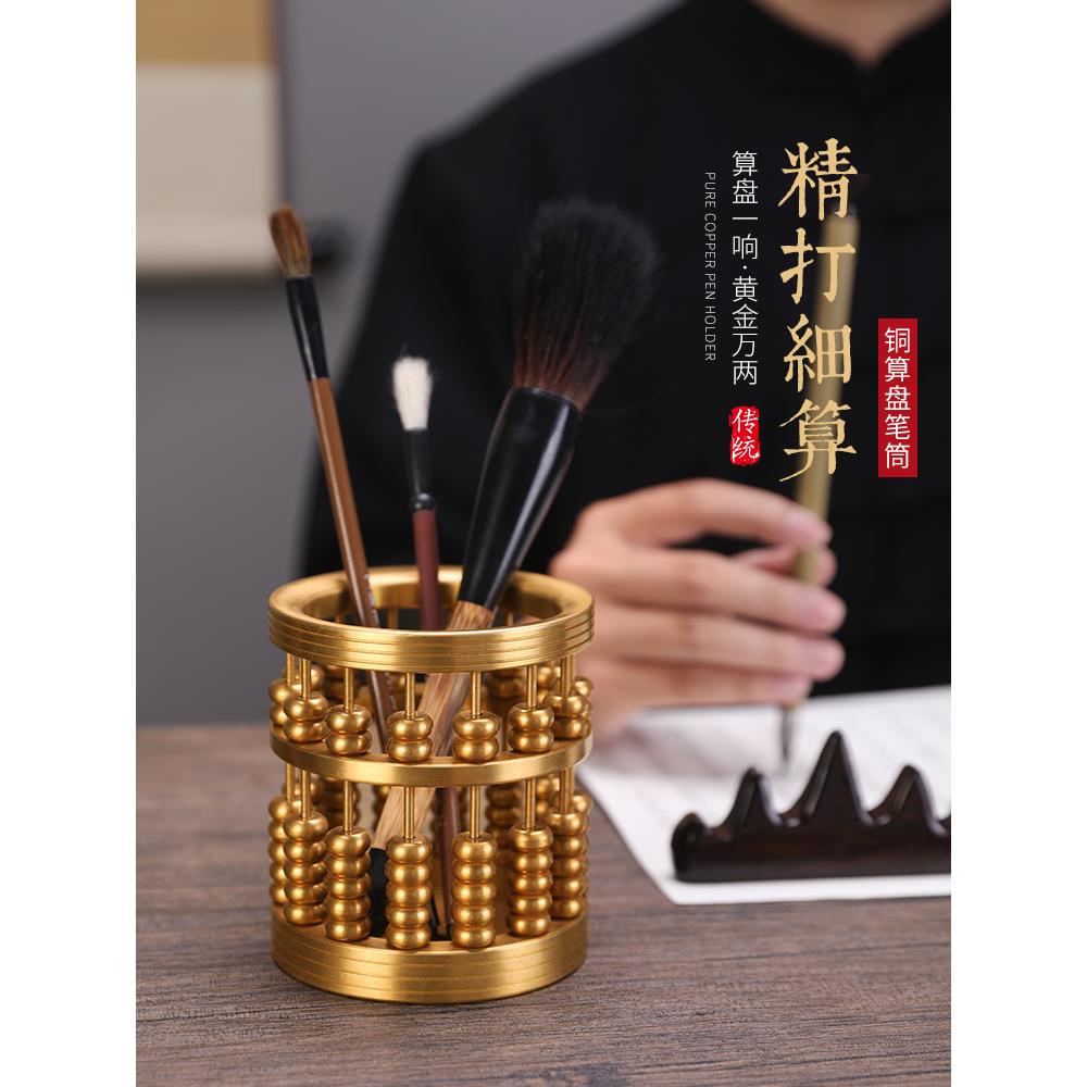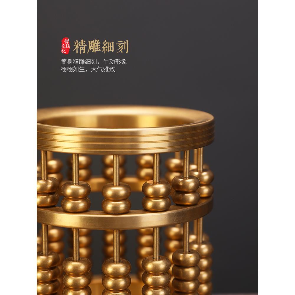 黄铜算盘笔筒摆件毛笔轻奢家用办公室书房桌面装饰品摆件商务礼品