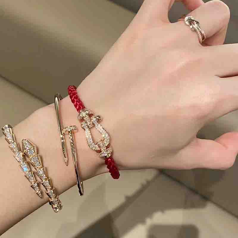 不掉色8字马蹄扣红绳转运手链情侣款男女百搭饰品18K镀玫瑰金手绳
