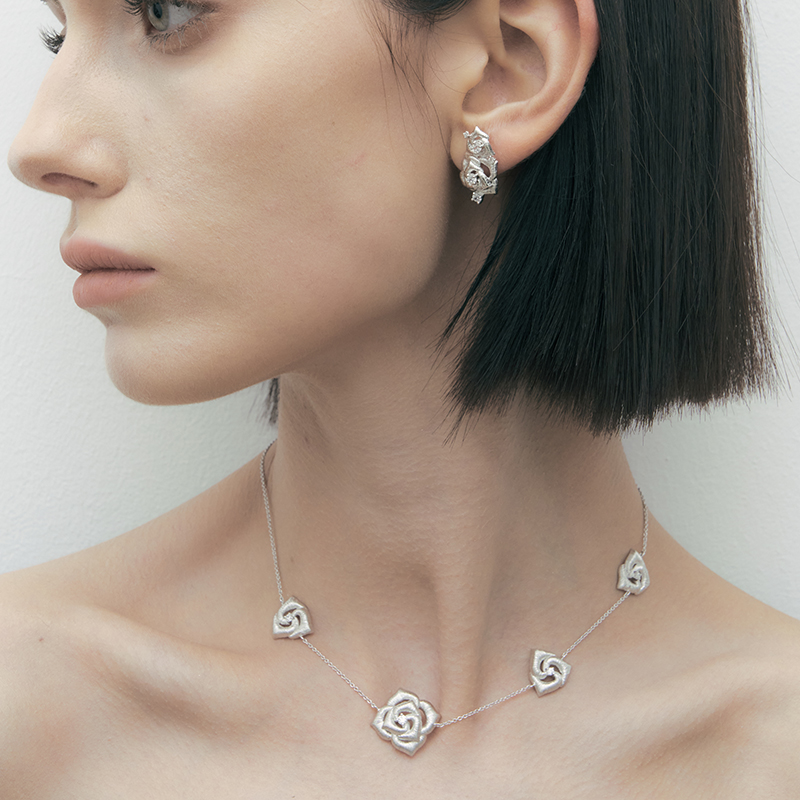 DINN DINN DESIGN设计高级项链繁花系列玫瑰花拼接锁骨链小众时尚