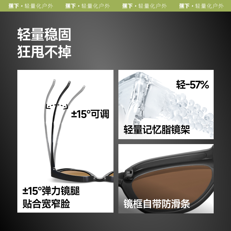 蕉下猫眼折叠墨镜女款复古高级感偏光防紫外线时尚太阳镜近视套镜