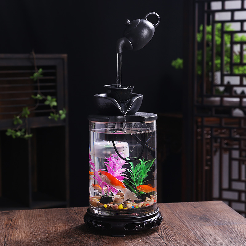 金鱼缸水族箱流水摆件喷泉自动循环生态装饰小型桌面办公室客厅
