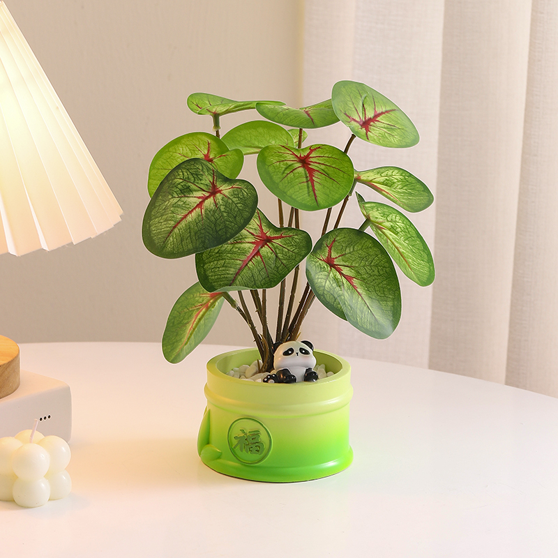 仿真绿植假花摆件可爱熊猫盆栽办公室工位桌面治愈系家居客厅装饰