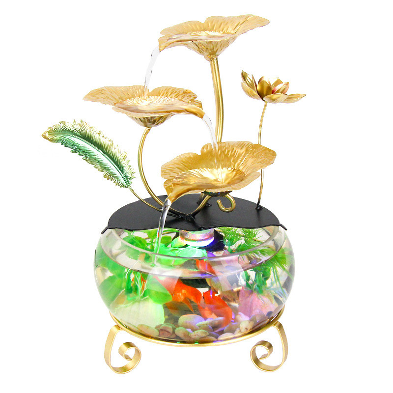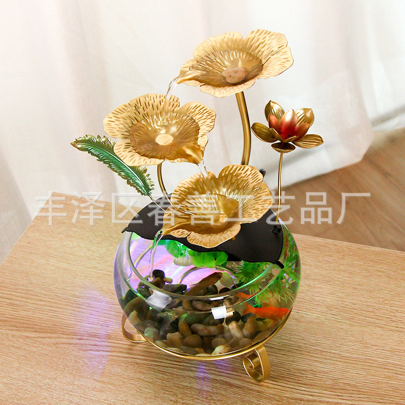 简约桌面玻璃鱼缸摆件流水摆件家居装饰品前台源头工厂铁艺电视柜