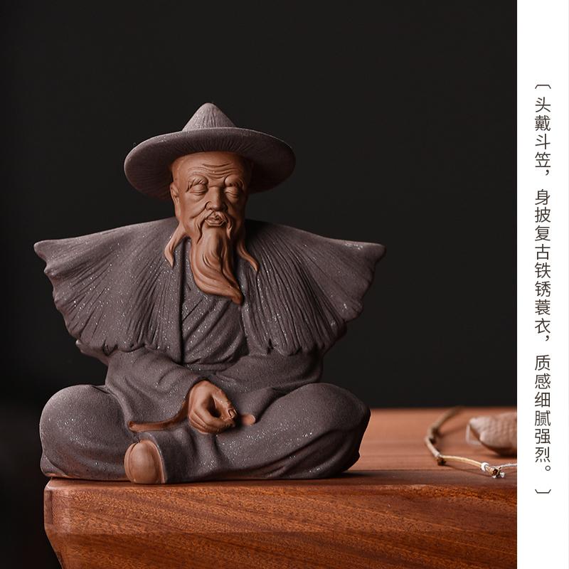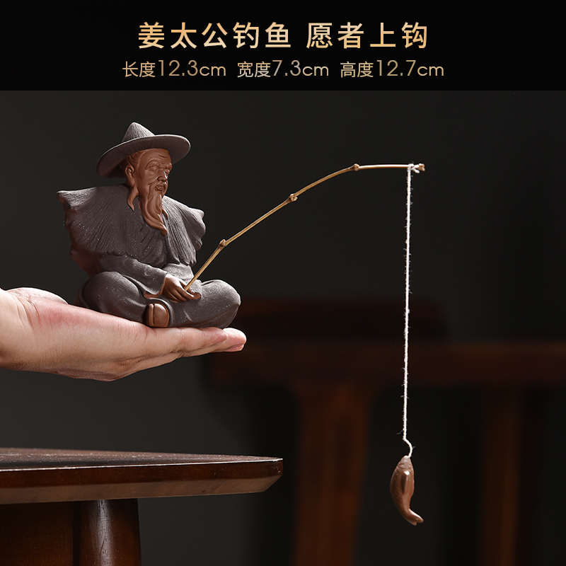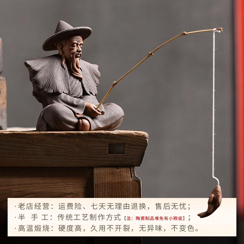 禅意姜太公钓鱼人物陶瓷摆件鱼翁老头鱼缸造景假山盆景装饰品配件