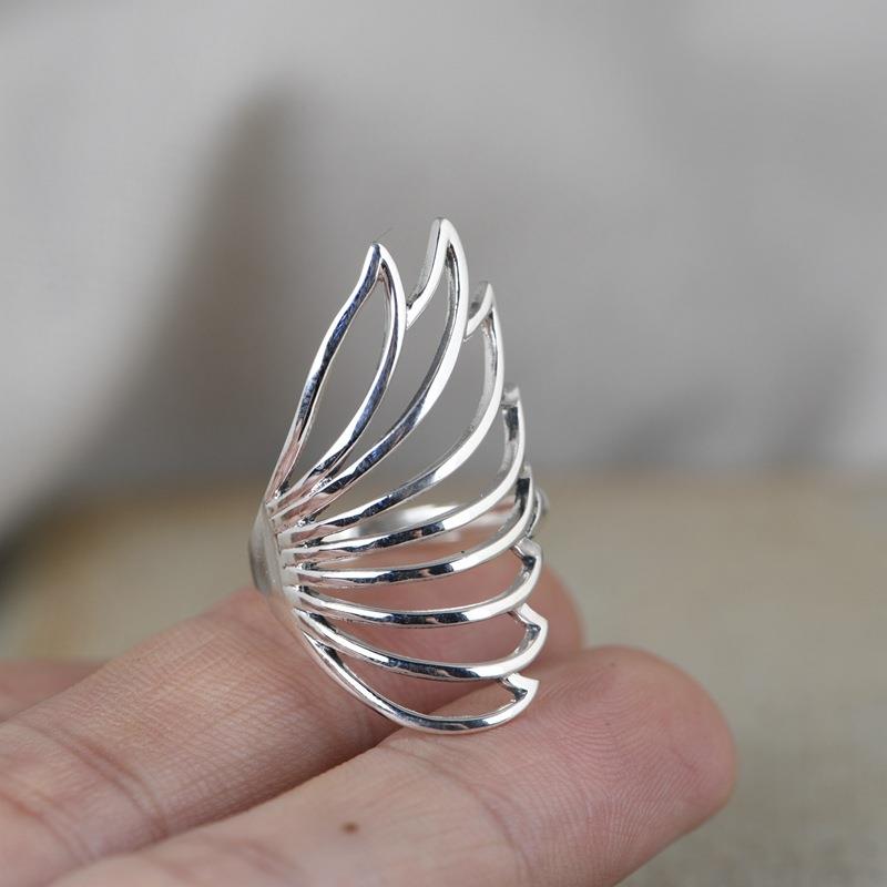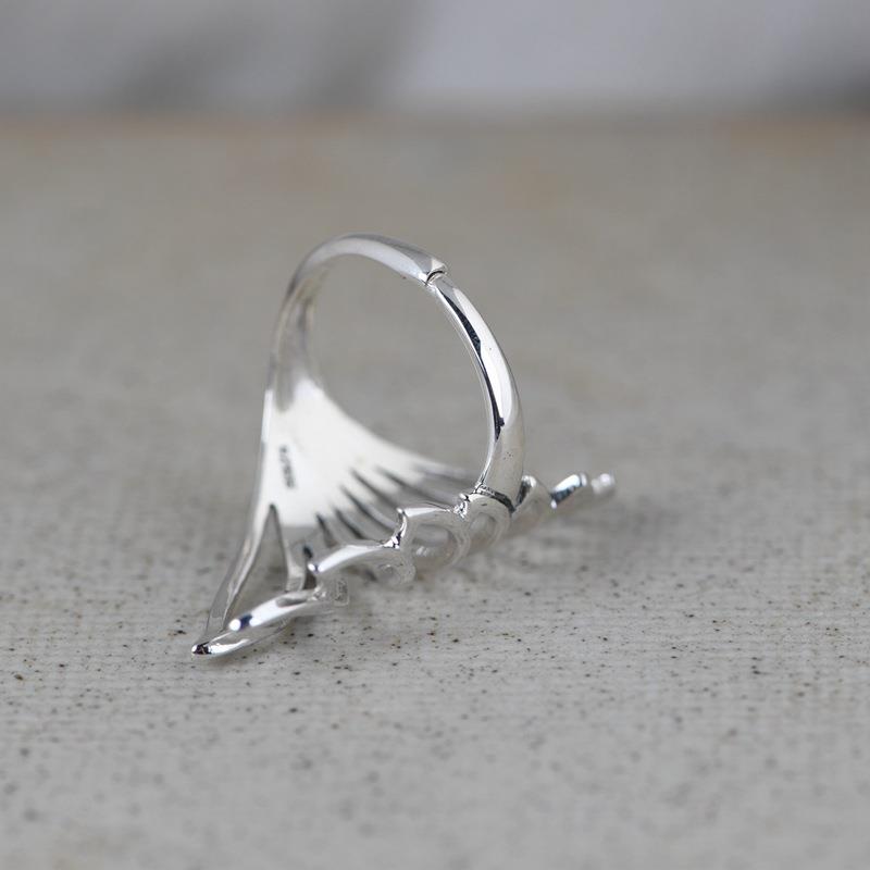 网红-925银复古做旧工艺戒指女款中指食指开口镂空叶子指环
