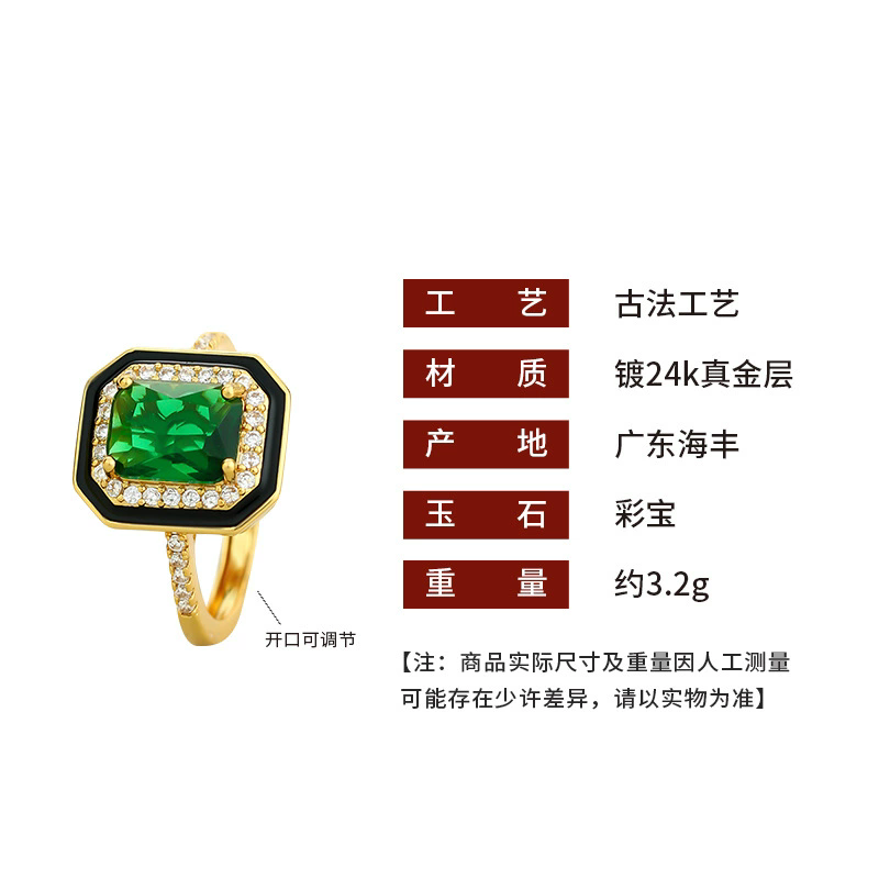 仿真帕拉伊巴套装简约公主方糖绿钻轻奢黑色珐琅戒指精工满钻指环