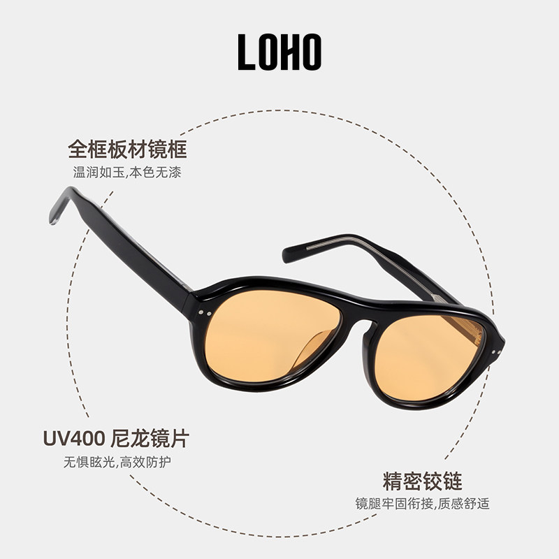 LOHO2026新款复古黑框茶片墨镜女防紫外线高清尼龙镜片防晒太阳镜