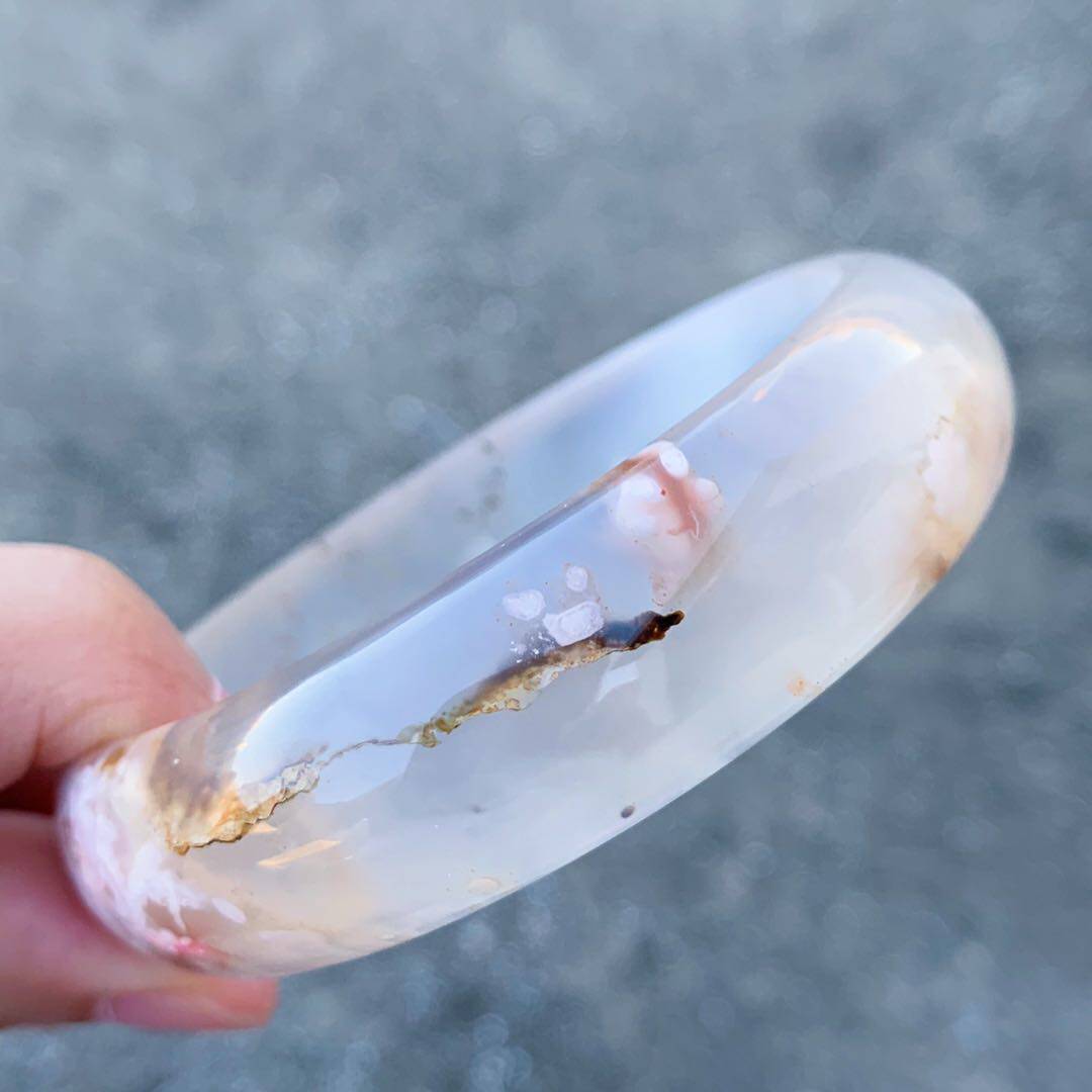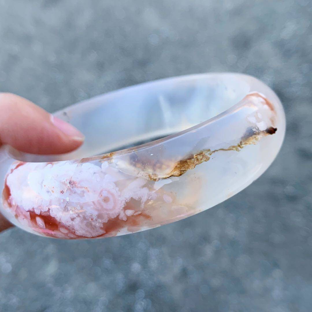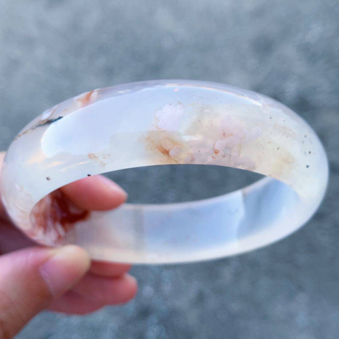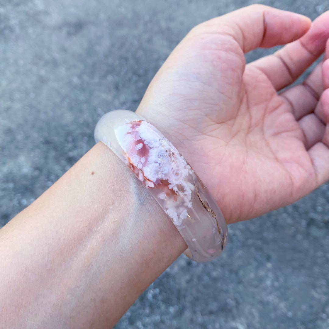 62圈天然冰透红色樱花玛瑙手镯网红女款百搭飘花海洋玉髓手环礼物