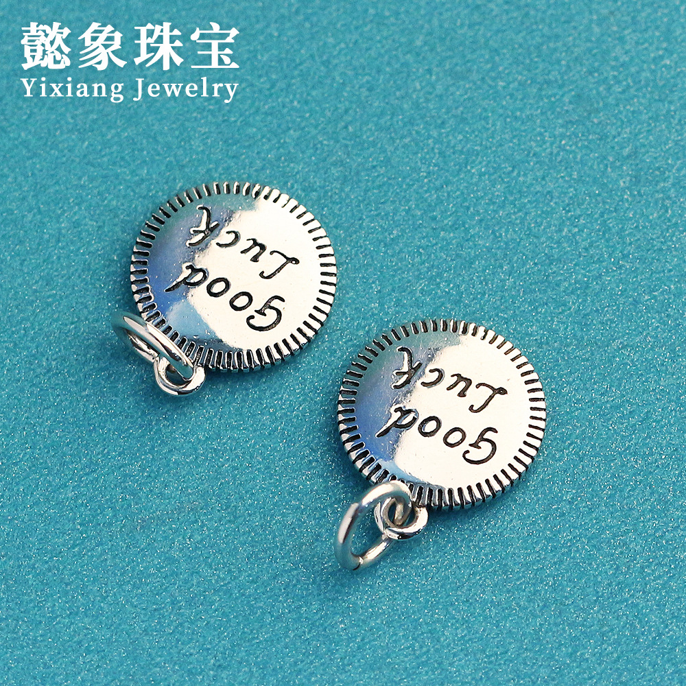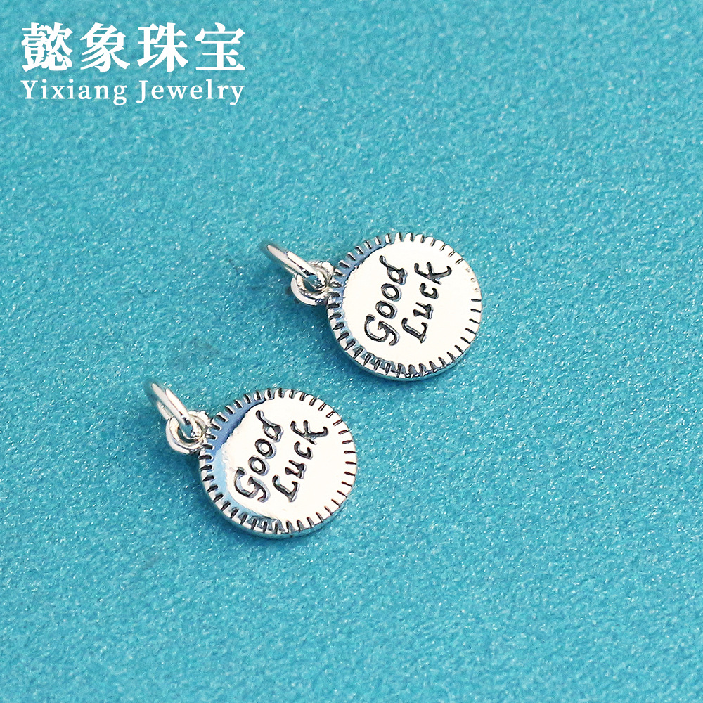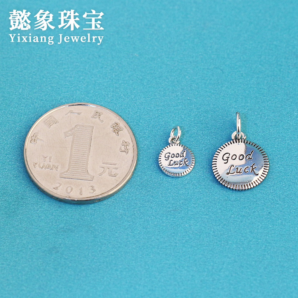 S925纯银英文goodluck圆牌吊坠配件 手工DIY编绳串珠手链幸运挂件