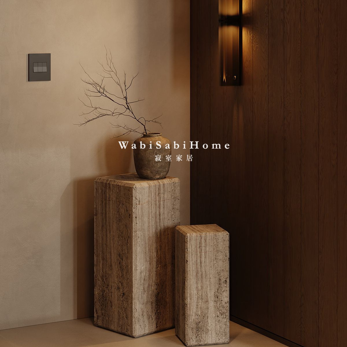 设计天然罗马黄洞大理石潘多拉别墅角几立柱子餐桌展台摆件雕塑台