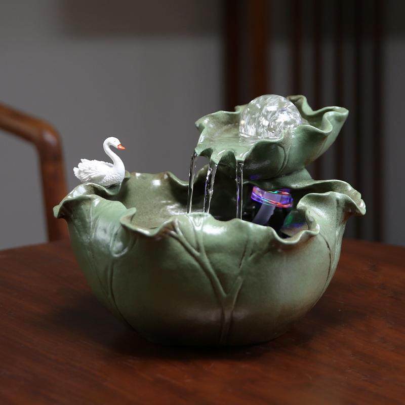 新中式造景鱼缸循环流水客厅玄关办公室装饰桌面摆件乔迁开业礼品