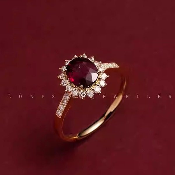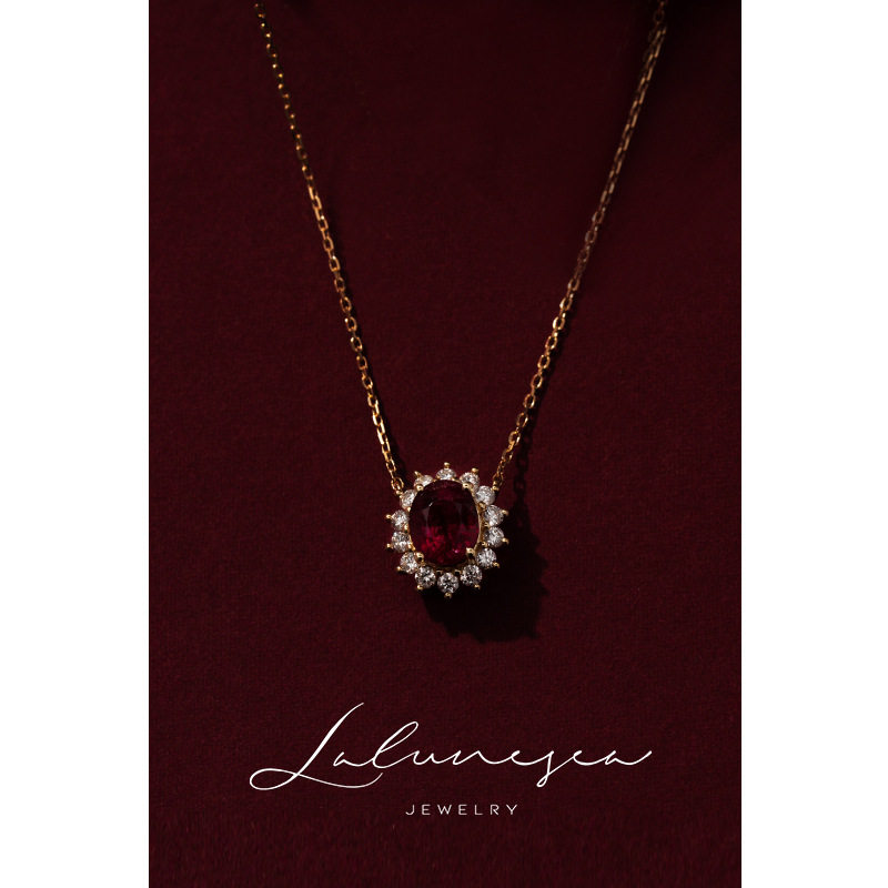 s925纯银镀18K金天然红宝石戒指吊坠耳钉套装女款精致气质百搭