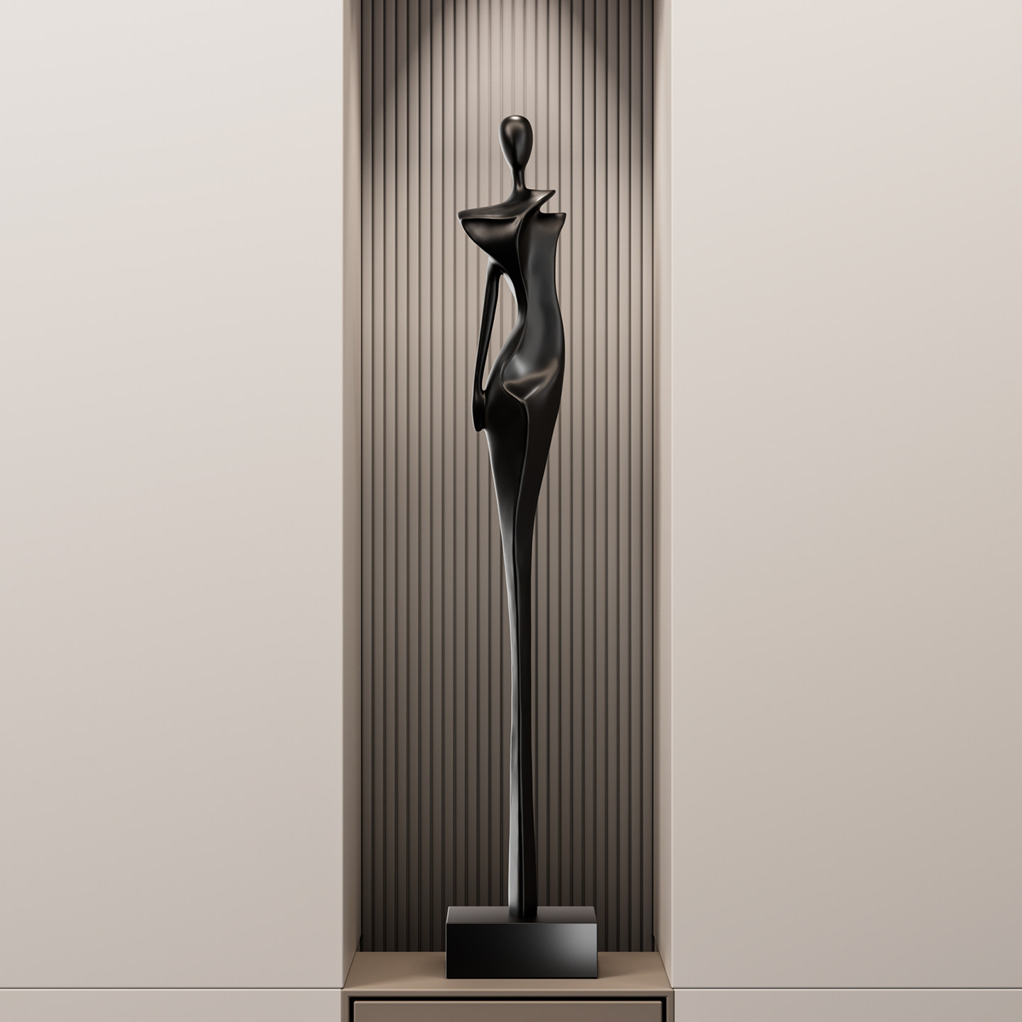 轻奢玄关摆件竖高客厅壁龛细长装饰品意式极简人物雕塑高级艺术感