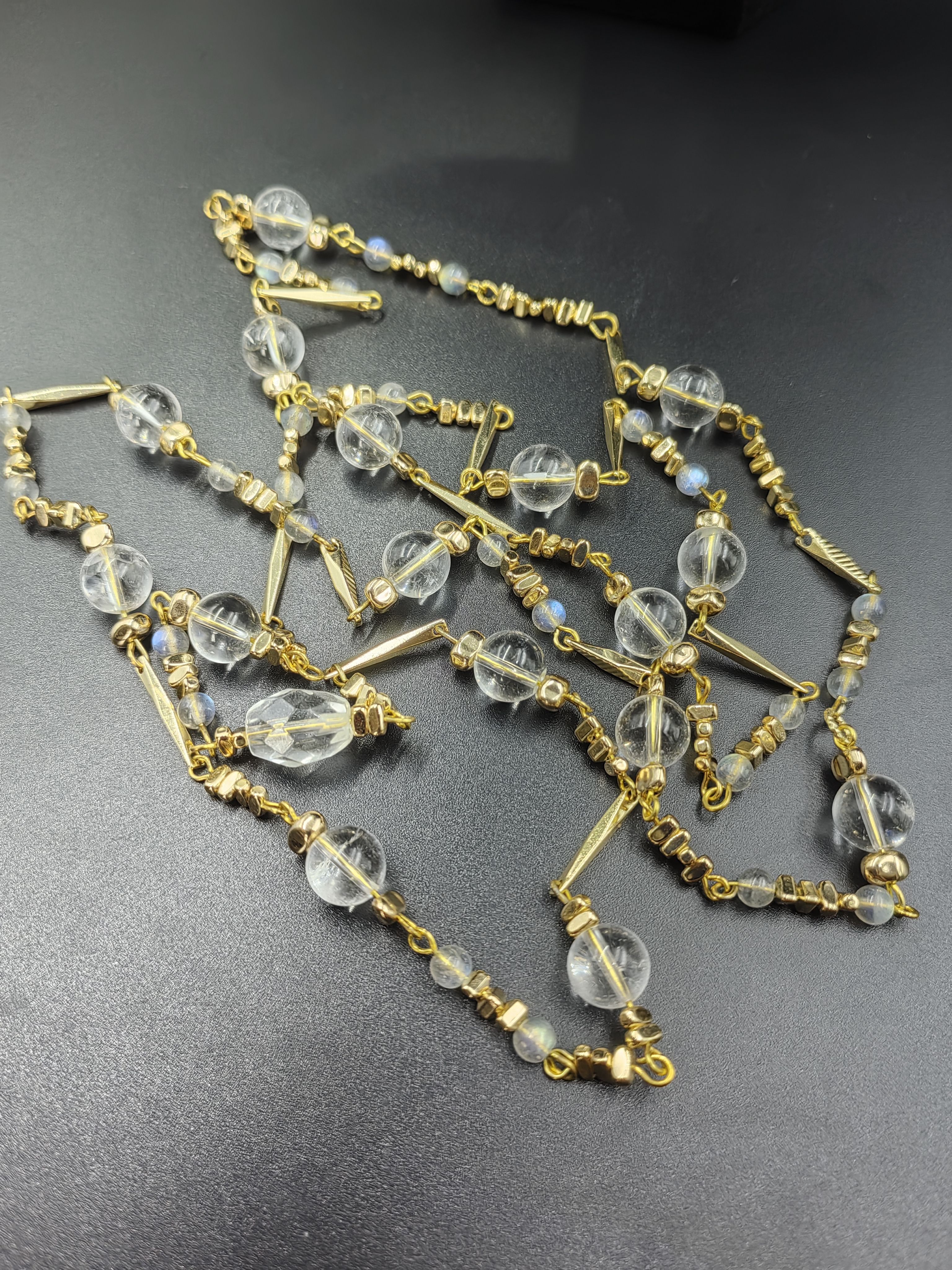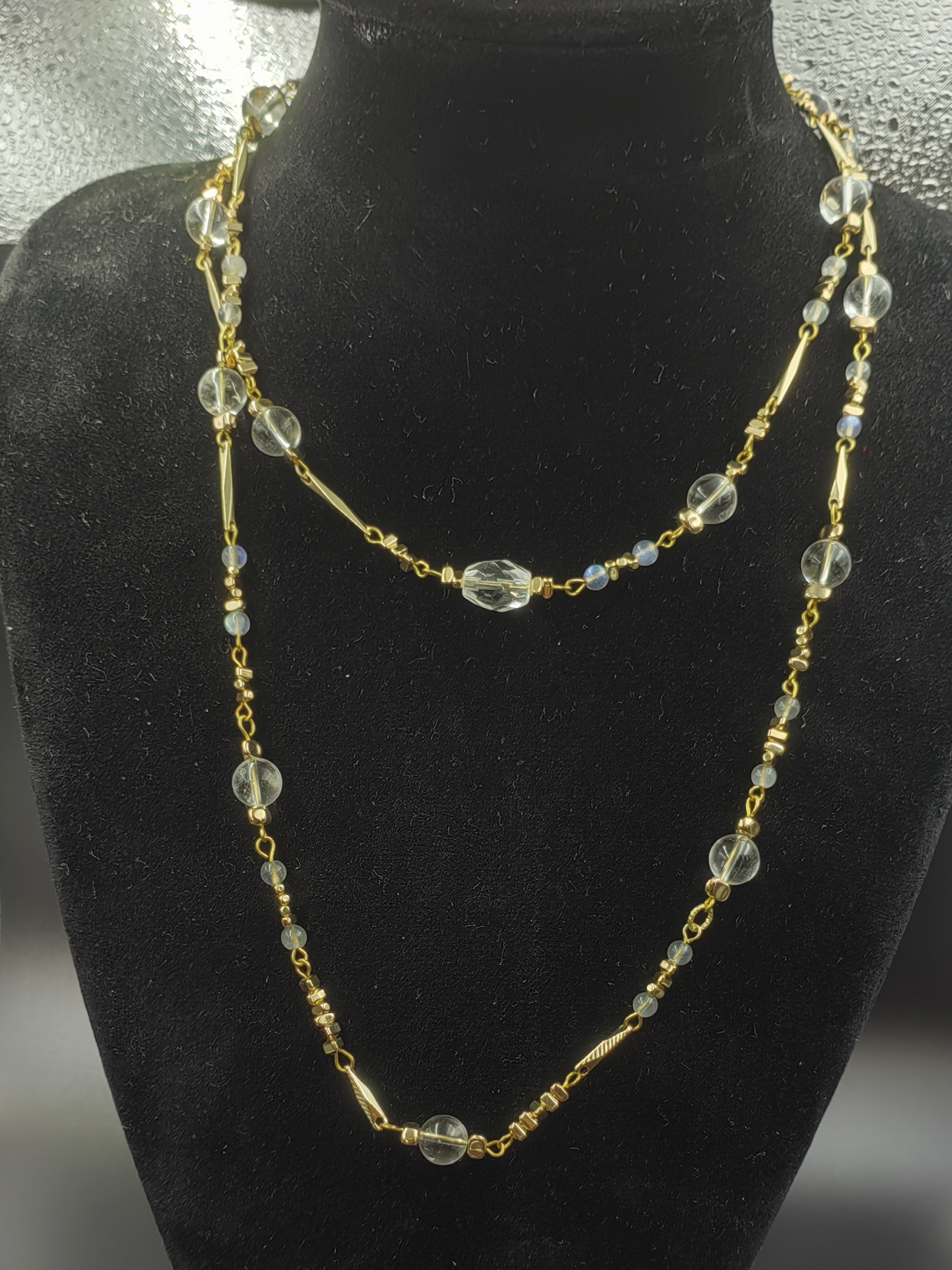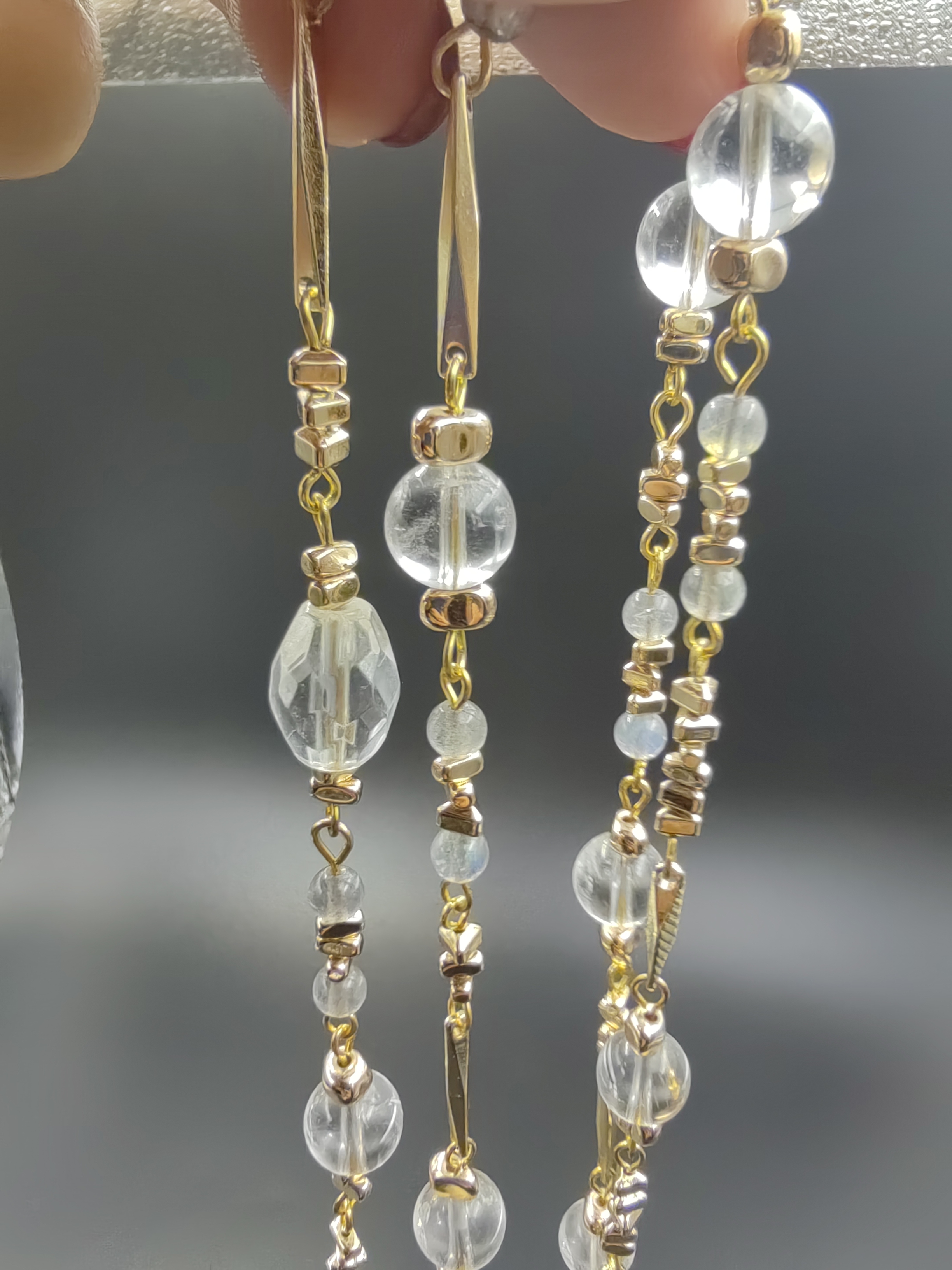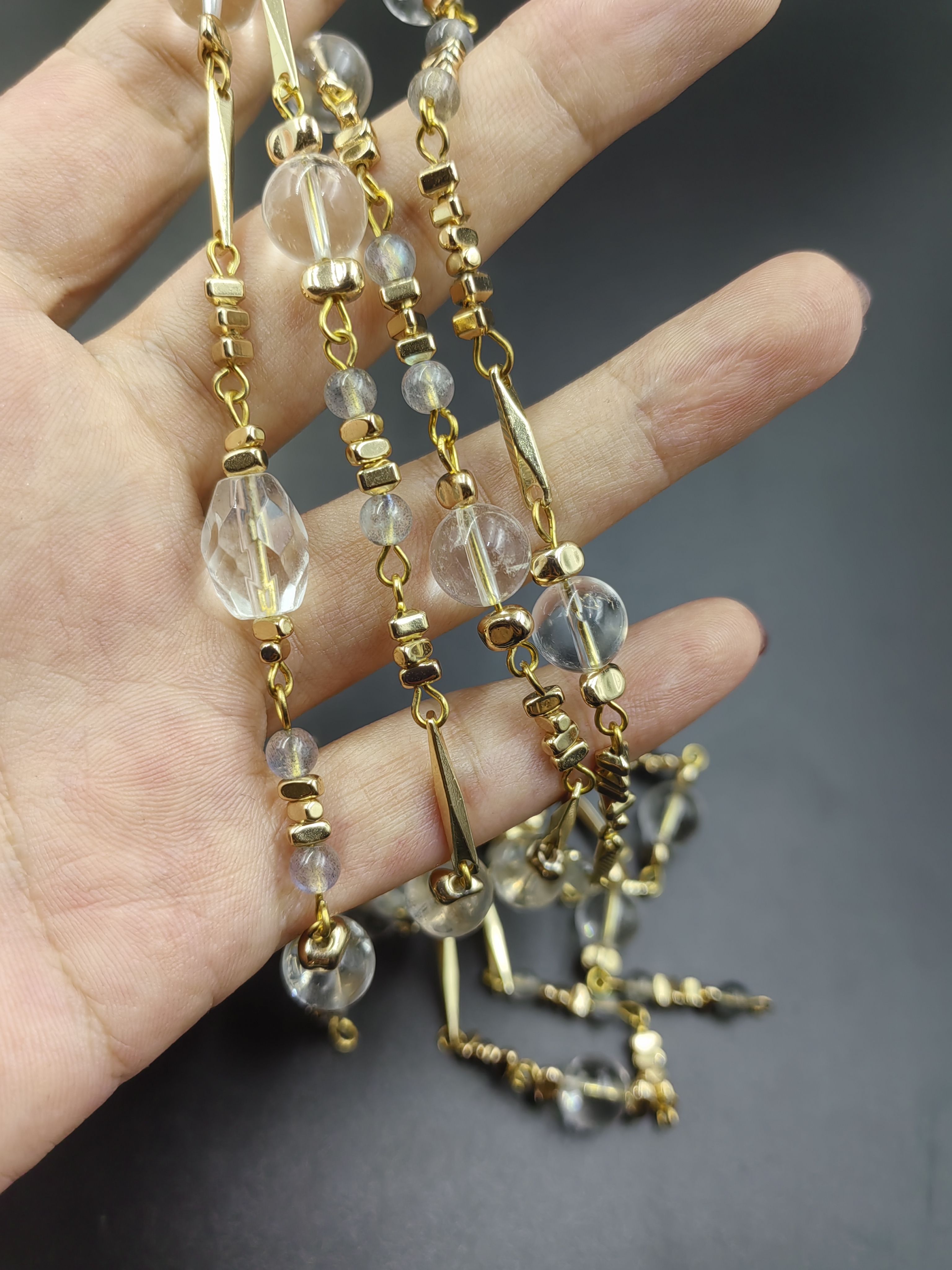 原创手工天然白色水晶10mm长项链毛衣链双层项链