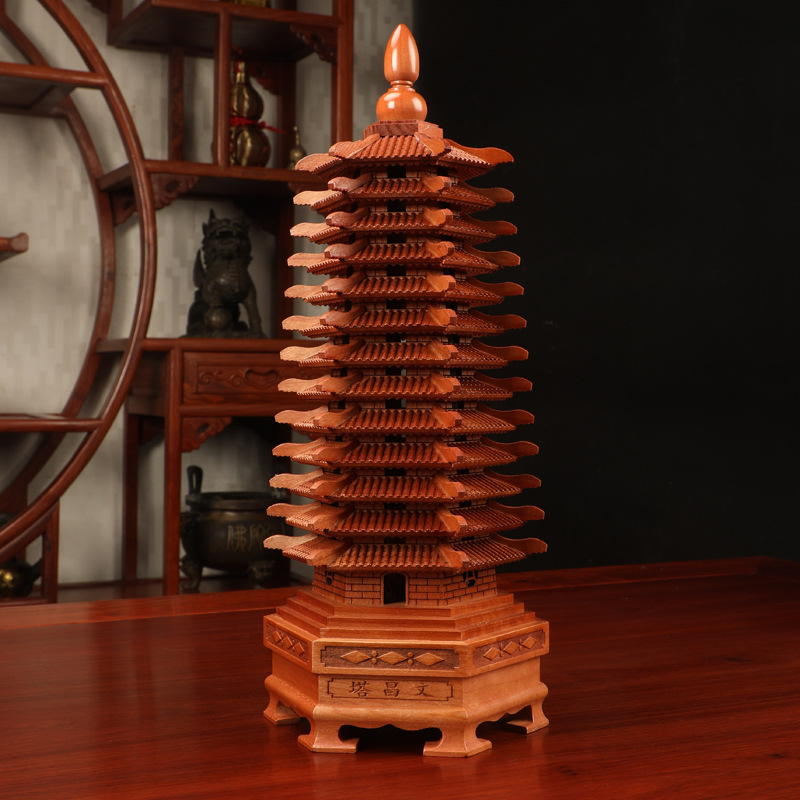 九层文昌塔摆件桃木13层木质十三层精雕书房书桌办公室小摆件客厅