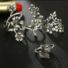 2018新款欧美复时尚个性古银色森系藤蔓树叶花朵4件戒指套装饰品