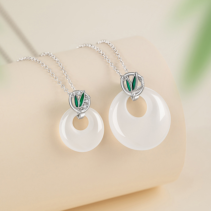 竹节纯银925玉髓情侣项链新中式国潮平安扣竹子锁骨链ins风吊坠