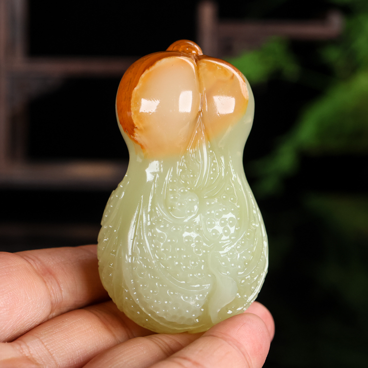 和田玉籽料白菜手把件摆件天然玉石新疆籽料百财来玉石挂件把玩件