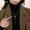 时尚几何方形环扣一字项链小众高领锁骨链轻奢春夏颈链配饰毛衣链