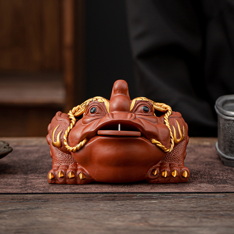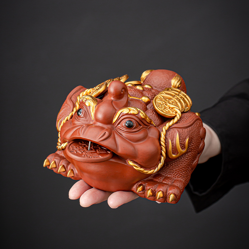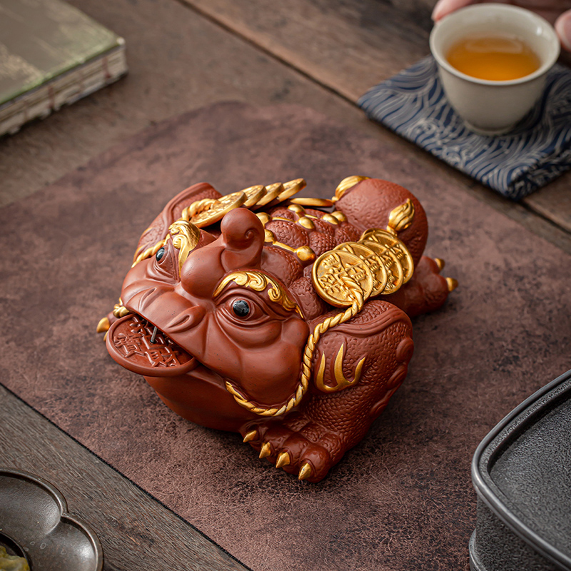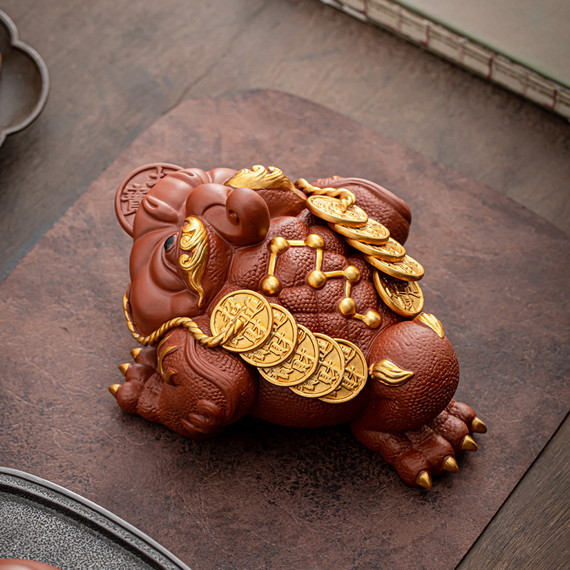朱泥紫砂招财金蟾茶宠摆件招财瑞兽茶桌装饰品办公室客厅工艺品