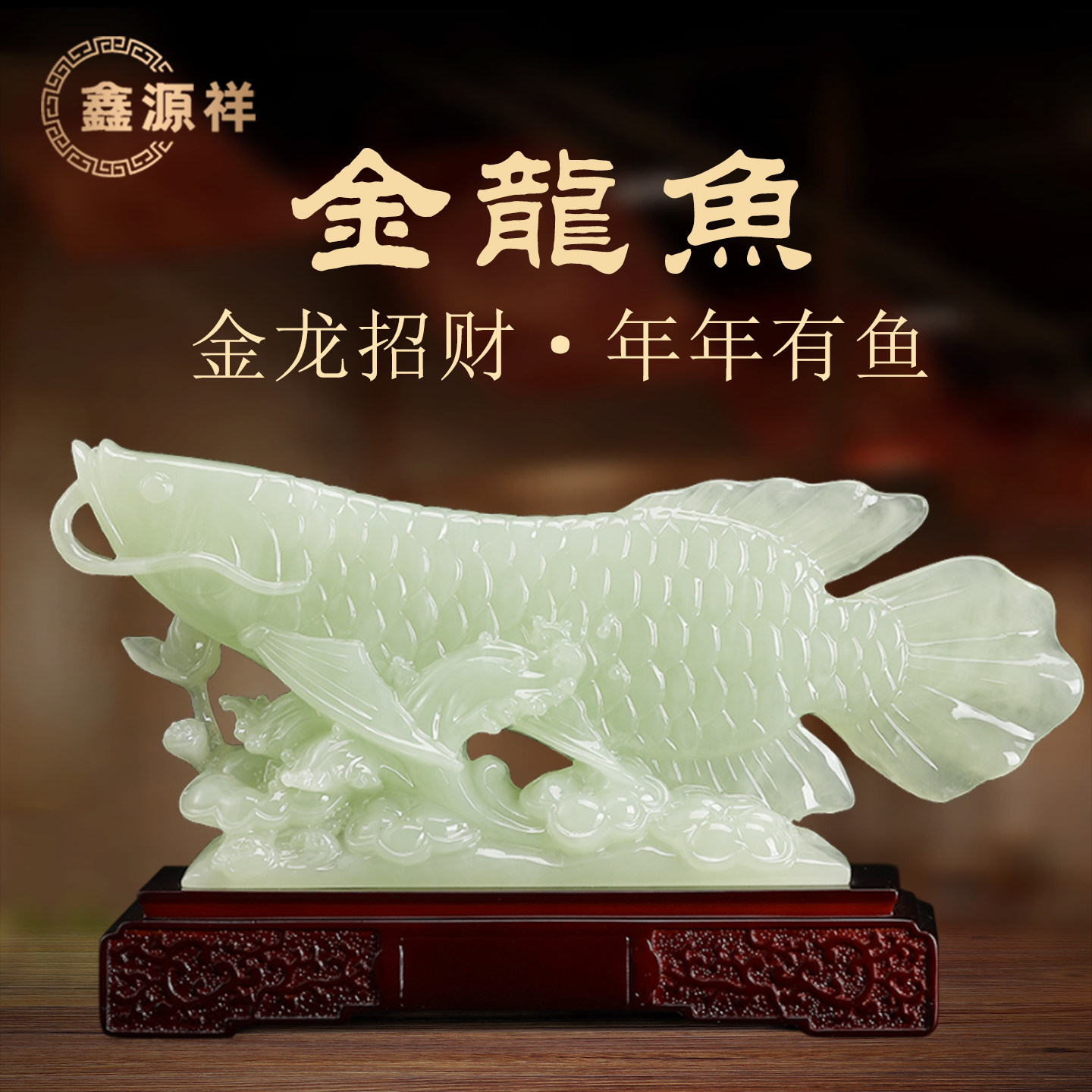 玉石金龙鱼摆件聚财客厅酒柜入户玄关招财装饰工艺品开业乔迁礼物