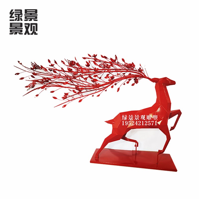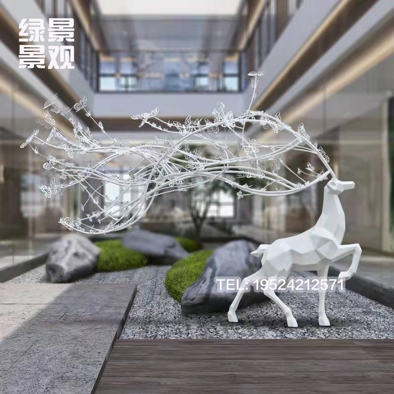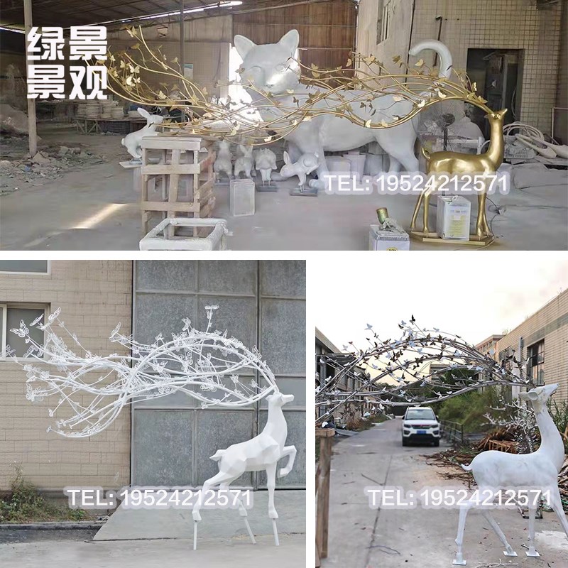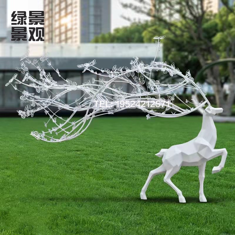金属户外大型不锈钢锻造动物景观抽象仿铜几何梅花鹿雕塑摆件定制