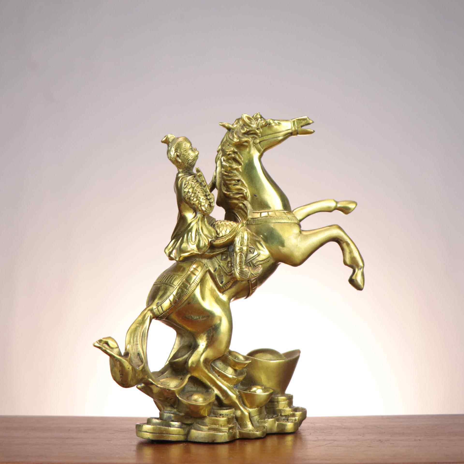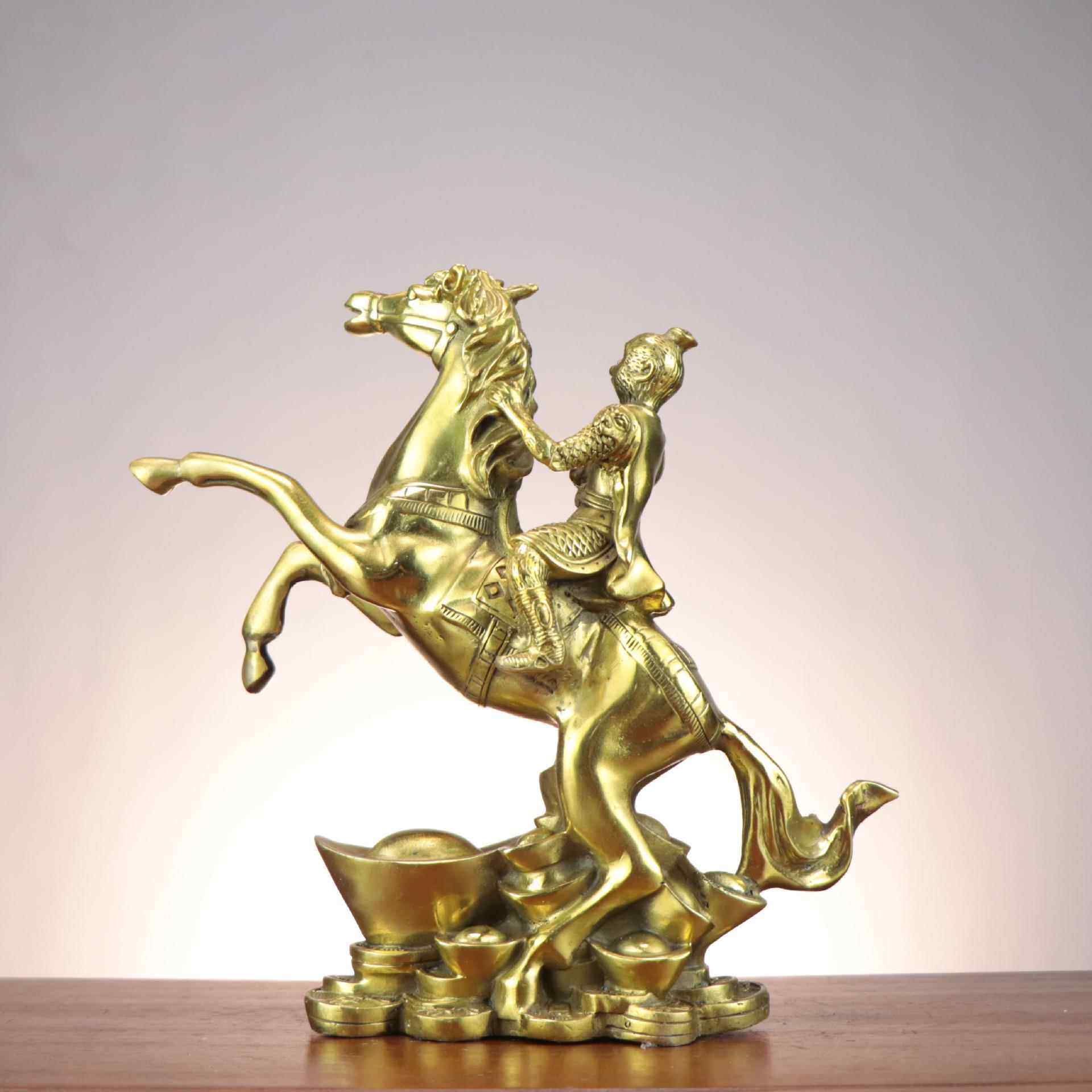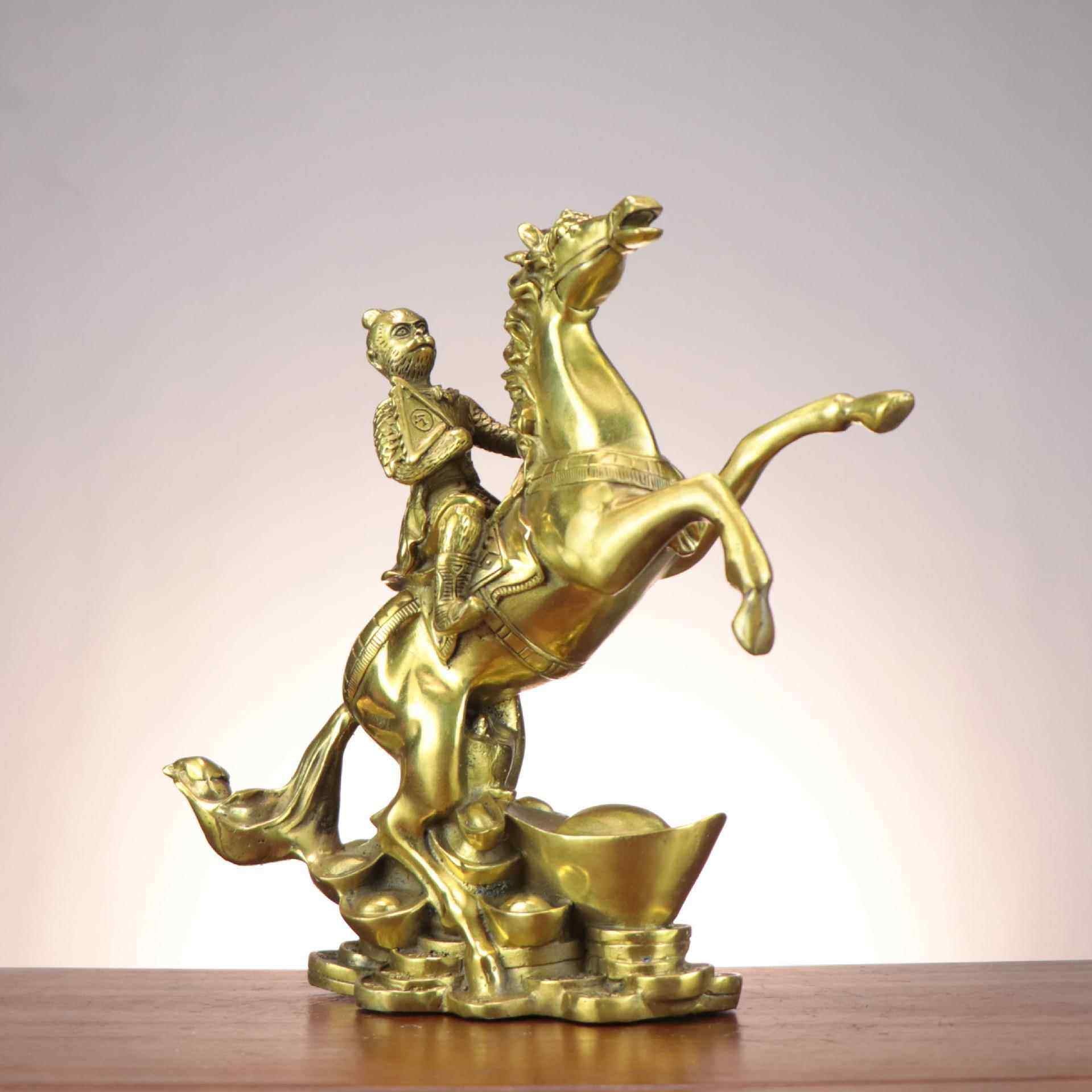 黄铜马上封侯摆件马上猴拿印拿令旗生肖猴 马上封侯
