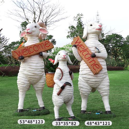 户外仿真动物山羊绵羊模型雕塑幼儿园售楼部卷毛羊草坪庭院大摆件