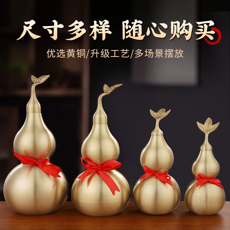 铜葫芦批发黄铜葫芦摆件开口带叶葫芦金属工艺品家居摆件八卦